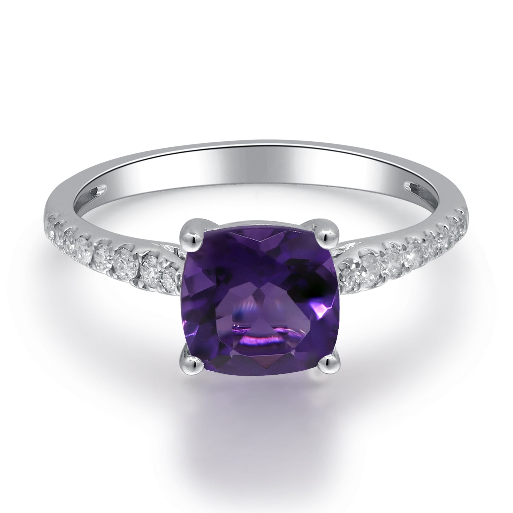 Stunning, timeless and classy eternity Unique Ring. Decorate yourself in luxury with this Gin & Grace Ring. The 10K Yellow Gold jewelry boasts Cushion-Cut Prong Setting Natural Amethyst (1 pc) 1.39 Carat, along with Natural Round cut white Diamond (16 Pcs) 0.13 Carat, accent stones for a lovely design. This Ring is weight 1.57 grams. Crafted with 10K Yellow Gold, this delicate Ring is polished to a high finish shine.
