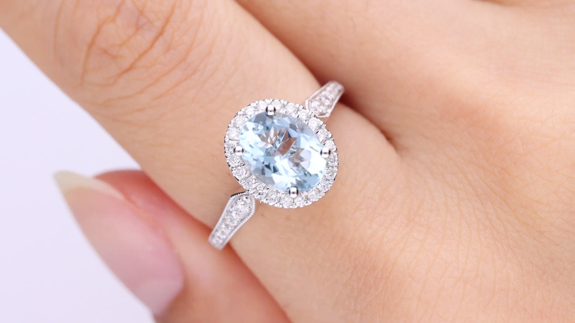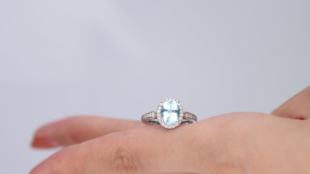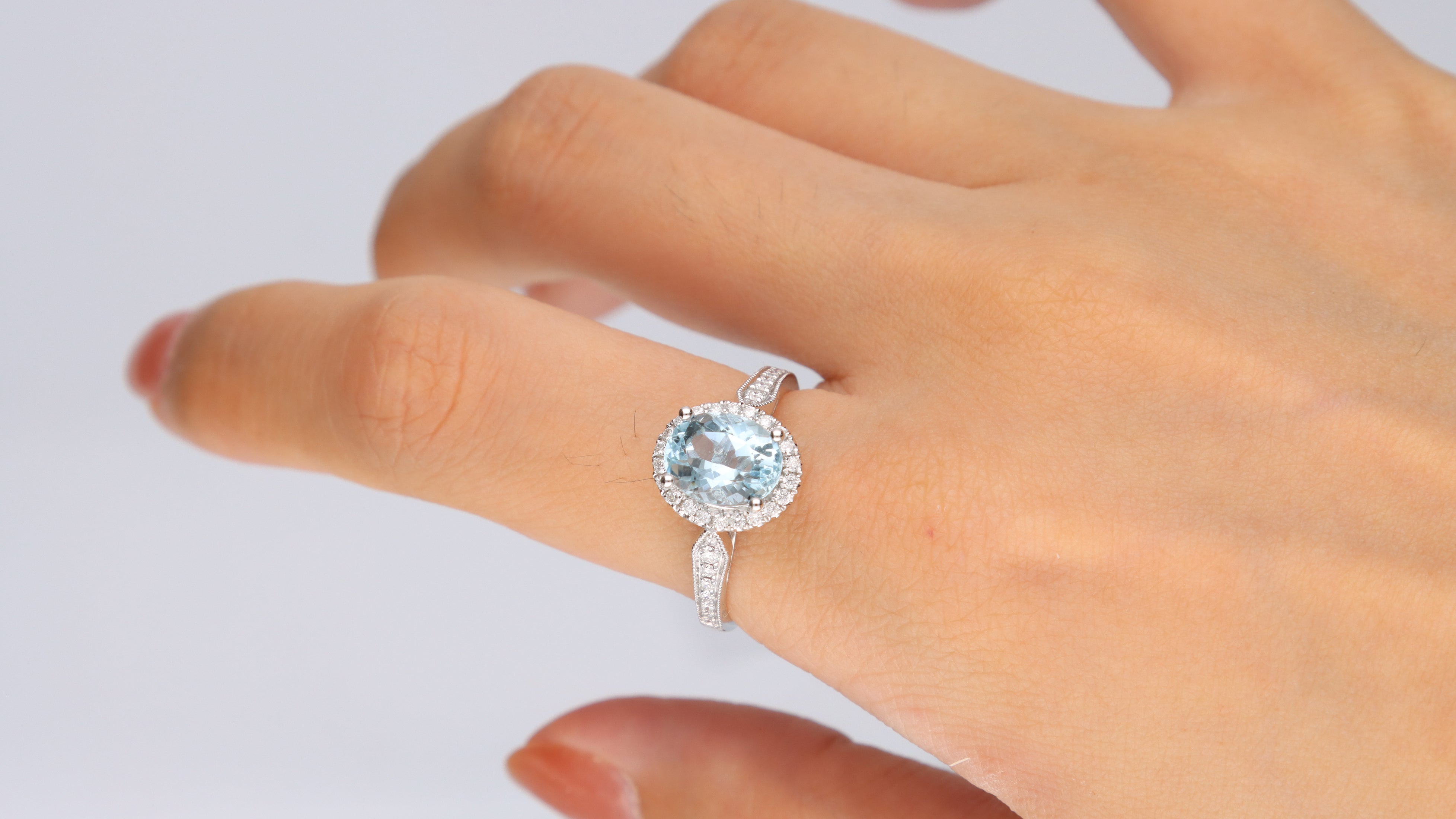 Savanna 14K White Gold Oval-Cut Blue Zircon Ring