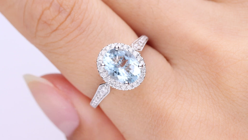 Stunning, timeless and classy eternity Unique Ring. Decorate yourself in luxury with this Gin & Grace Ring. The 14K White Gold jewelry boasts Oval-Shape Prong Setting Genuine Blue Zircon (1 pc) 1.71 Carat along with Natural Round cut white Diamond (38 Pcs) 0.30 Carat, accent stones for a lovely design. This Ring is weight 2.92 grams. Crafted with 14K White Gold, this delicate Ring is polished to a high finish shine.
