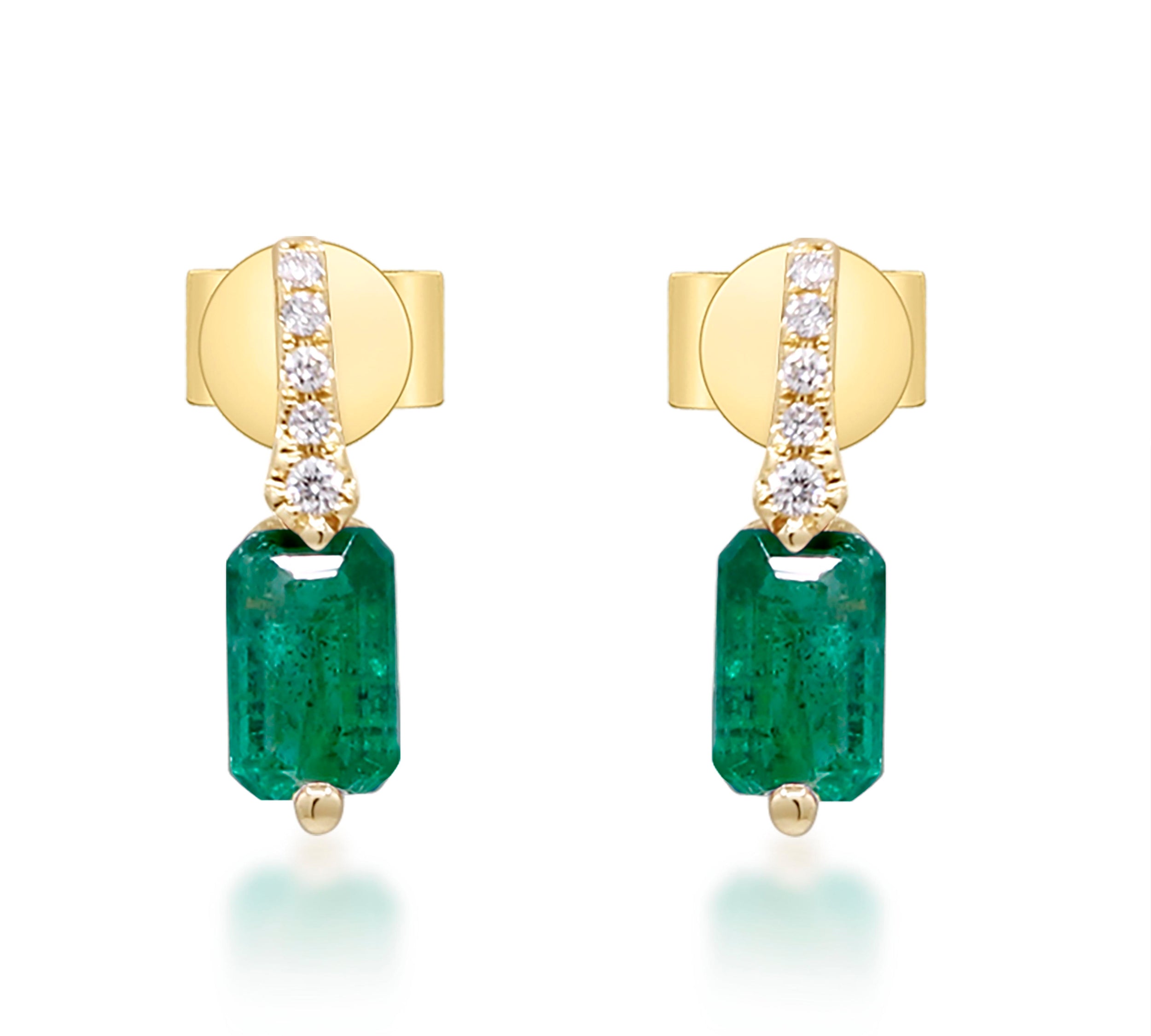 Elsie 10K Yellow Gold Emerald-Cut Natural Zambian Emerald Earrings