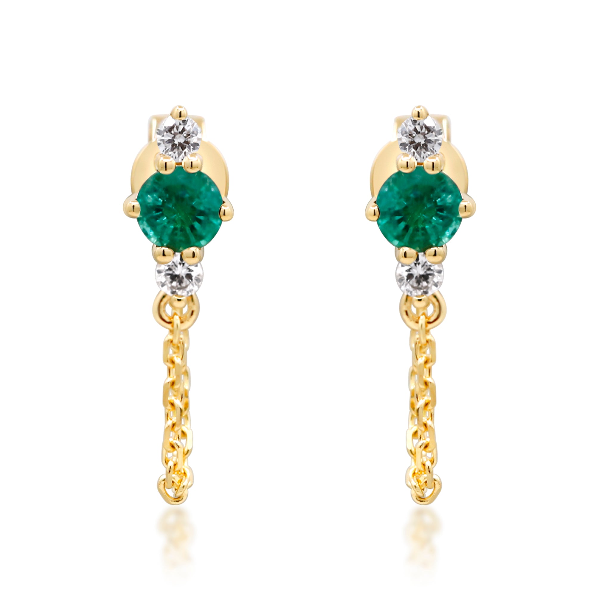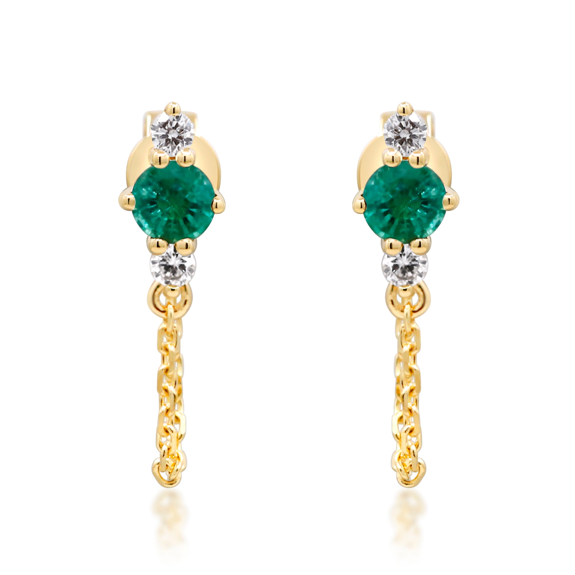 Decorate yourself in elegance with this Earring is crafted from 14-karat Yellow Gold by Gin & Grace. This Earring is made up of Round Zambian Emerald (2 pcs) 0.34 carat, Round-cut White Diamond (4 Pcs) 0.10 Carat. This Earring is weight 1.02 grams. This delicate Earring is polished to a high finish shine.
