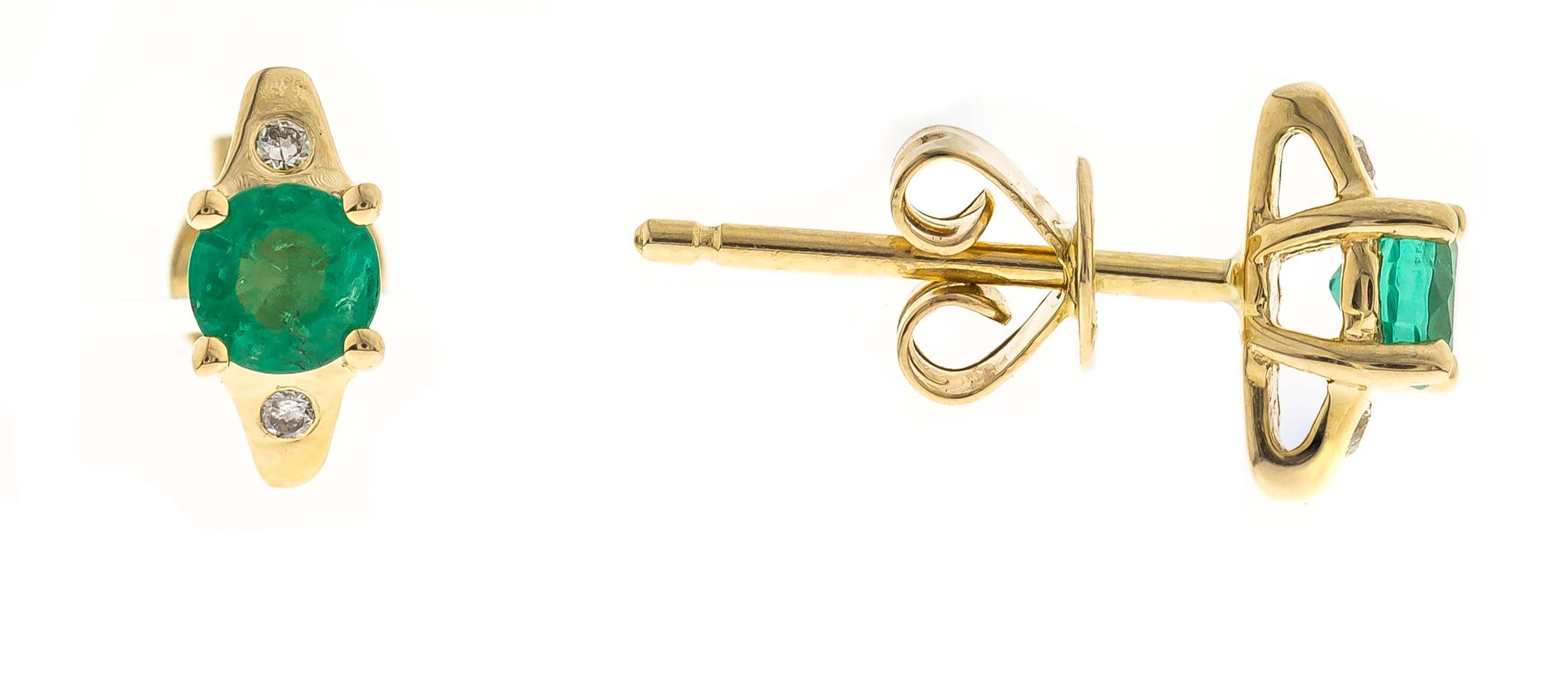Decorate yourself in elegance with this Earring crafted from 14K Yellow Gold by Gin & Grace. This Earring is made up of an Emerald Round-cut (2 pcs) 0.32 carat and Round-cut White Diamond (4 Pcs) 0.02 Carat. This Earring weighs 0.90 grams. This delicate Earring is polished to a high finish shine.