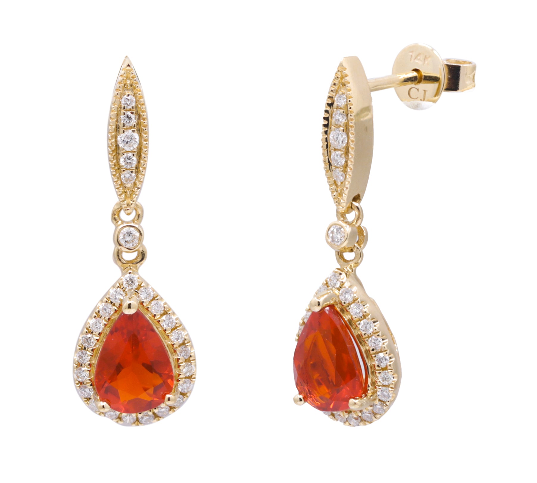 Kennedy 14K Yellow Gold Pear-Cut Mexican Fire Opal Earring