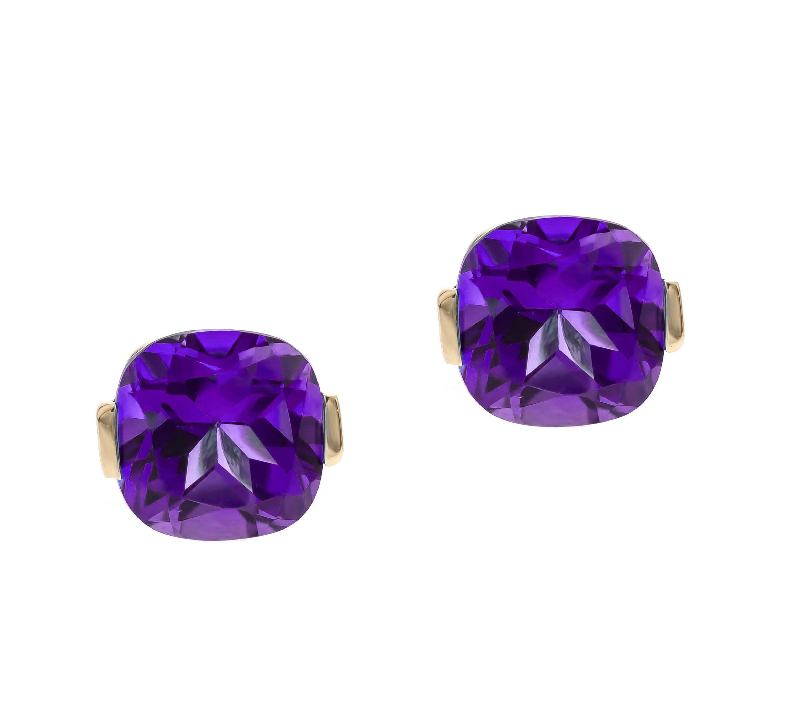Sofia 10K Yellow Gold Cushion-Cut Amethyst Earring