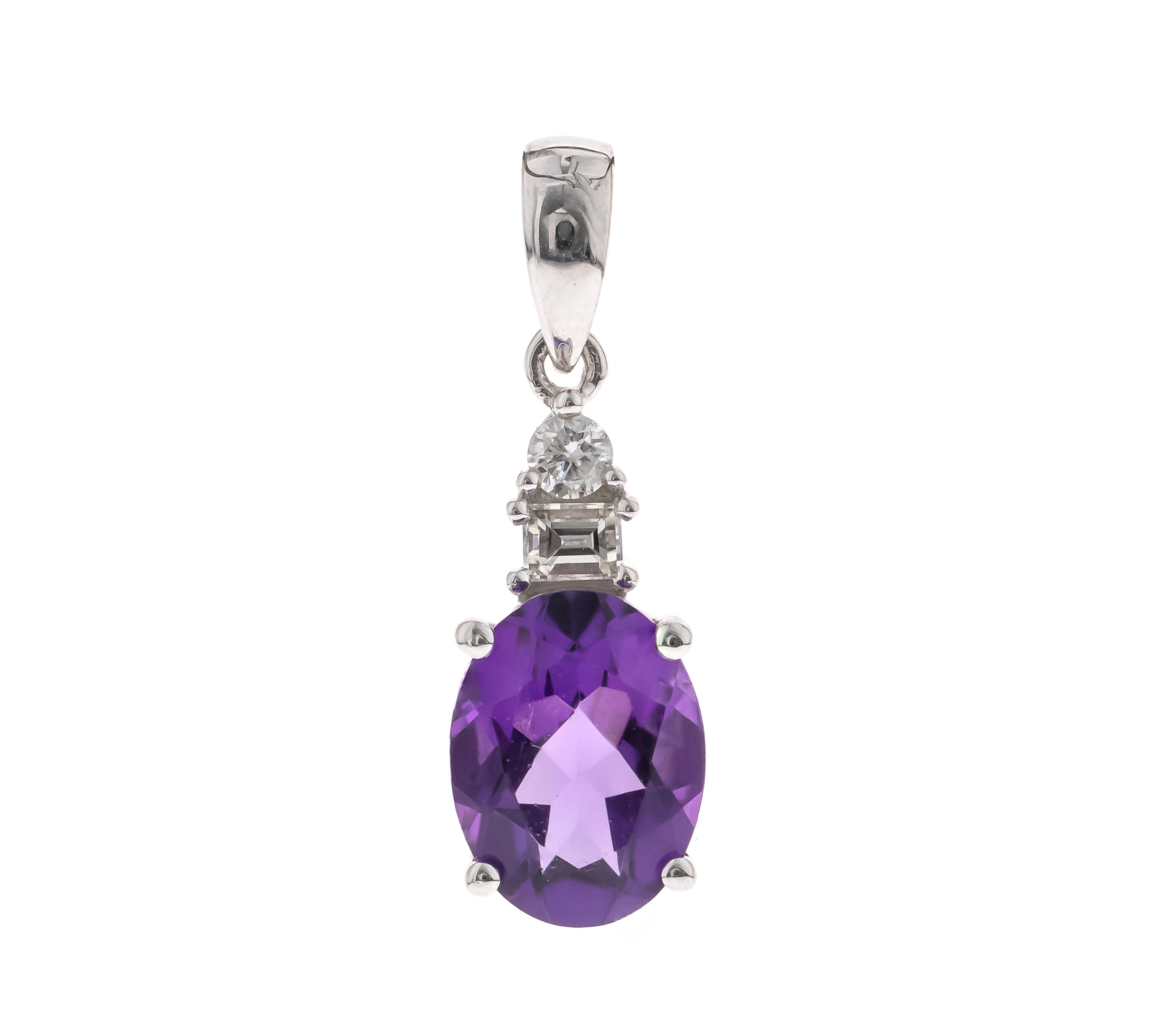 Samantha 10K White Gold Oval-Cut Brazilian Amethyst Pendant