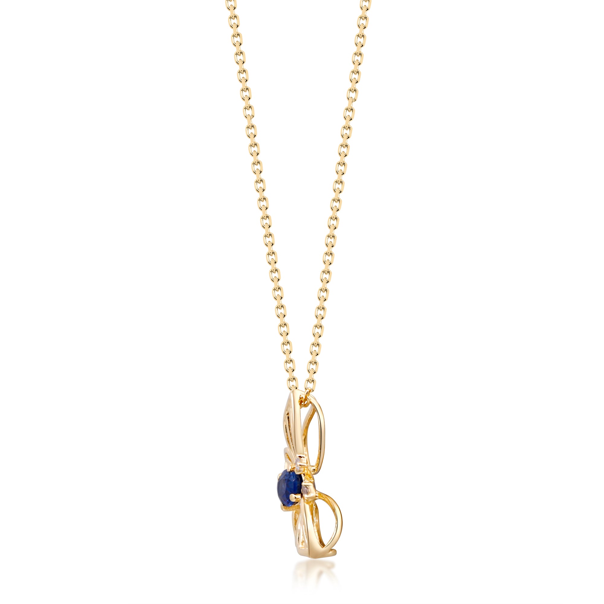 Decorate yourself in elegance with this Pendant is crafted from 10K Yellow Gold by Gin & Grace. This Pendant is made up of Oval-Cut Blue Sapphire (1 pcs) 0.22 carat and Round-cut White Diamond (2 Pcs) 0.09 Carat. This Pendant is weight 0.52 grams. This delicate Pendant is polished to a high finish shine.