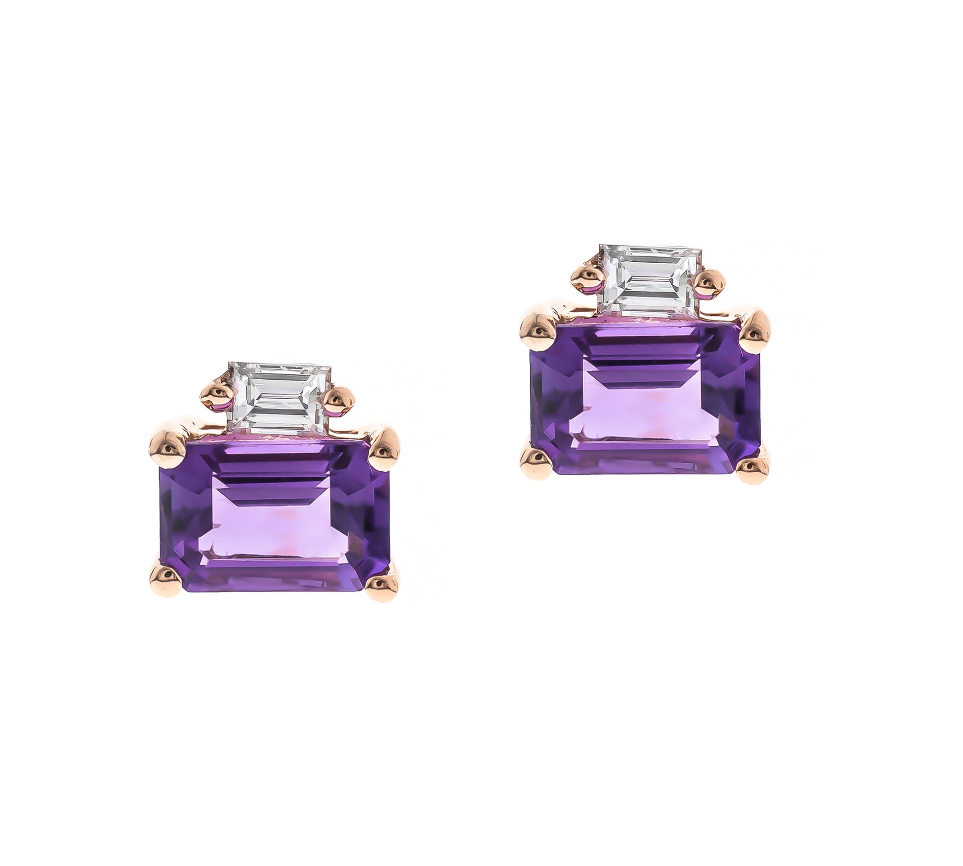 Ashlyn 10K Rose Gold Emerald-Cut Brazilian Amethyst Earring