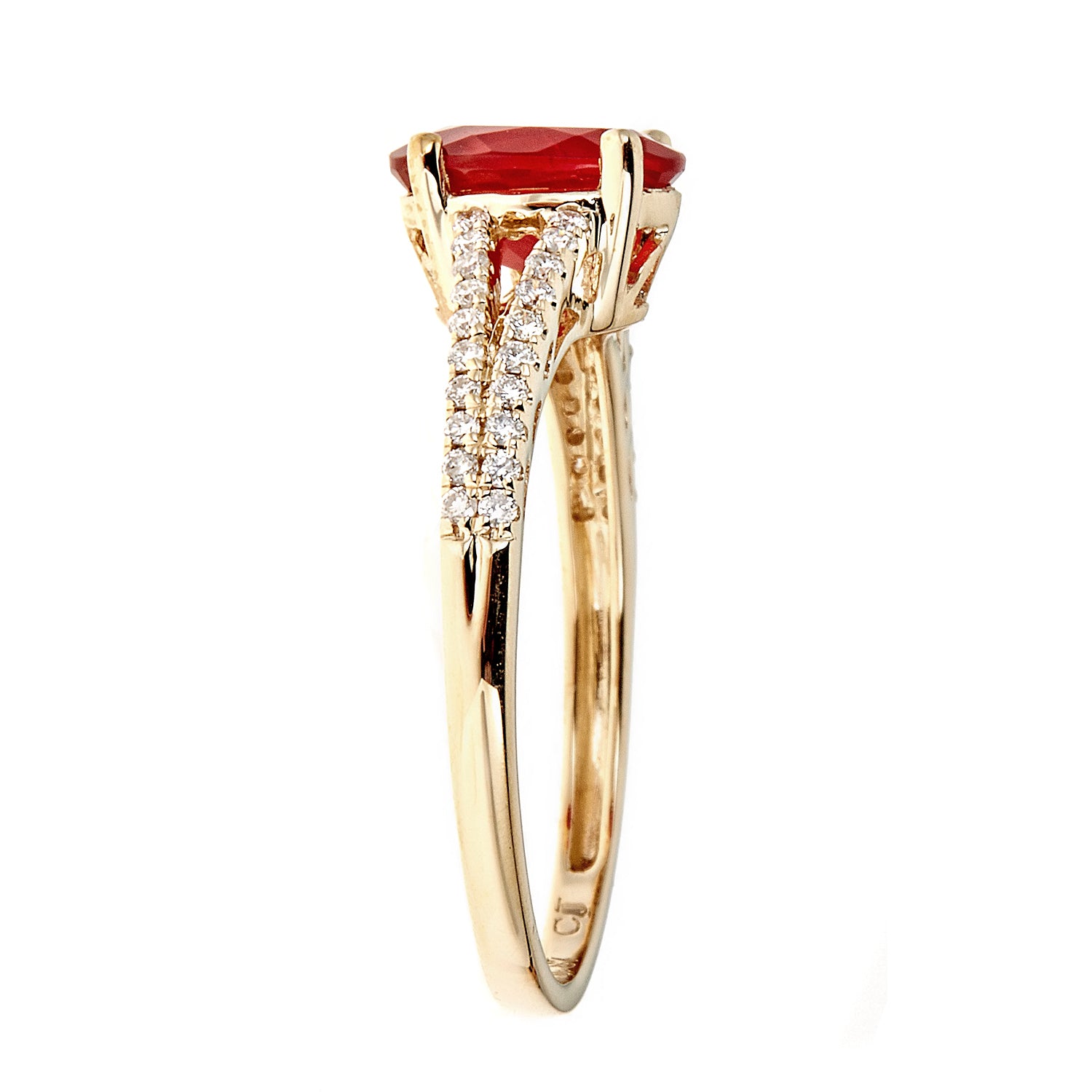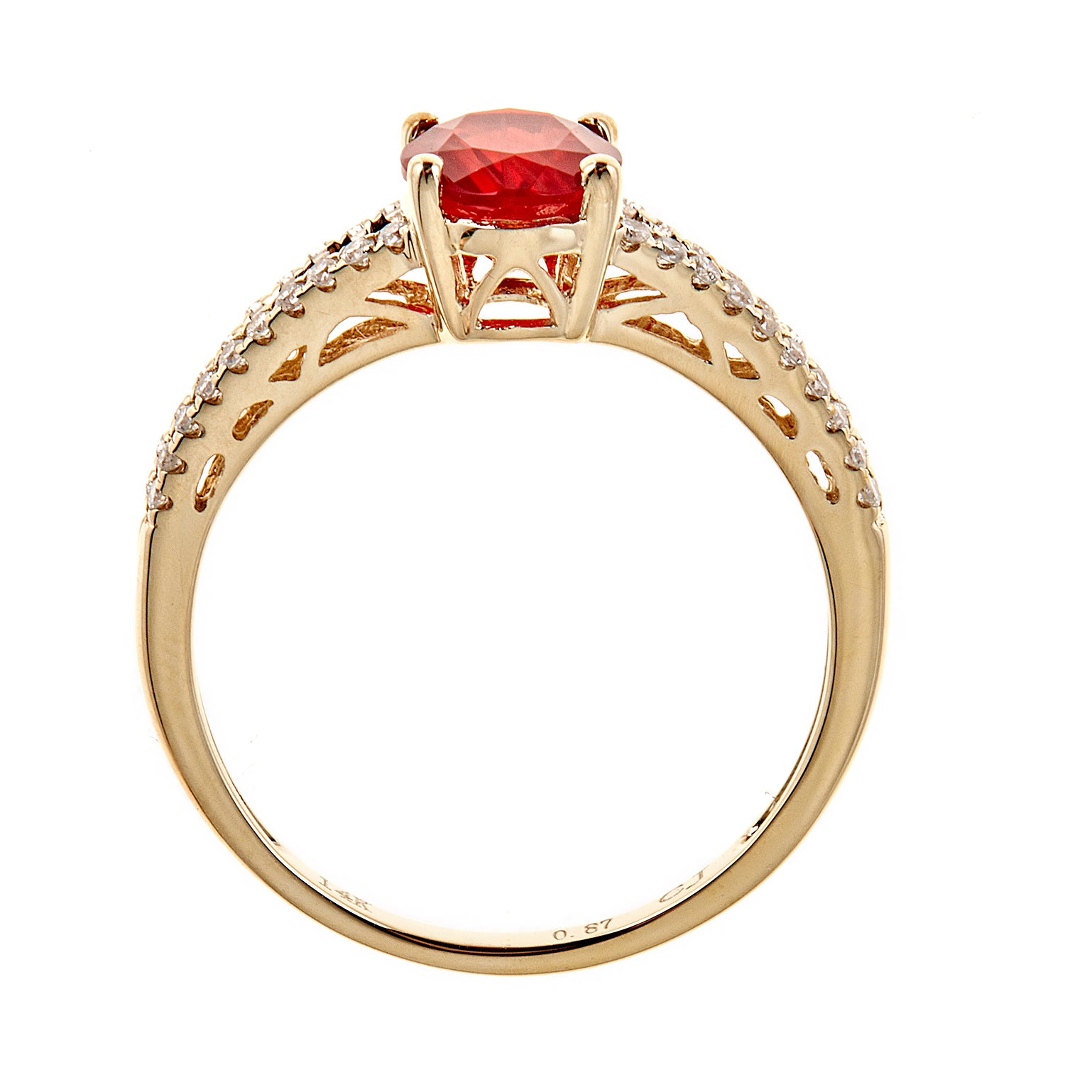 Stunning, timeless and classy eternity Unique ring. Decorate yourself in luxury with this Gin & Grace ring. The 14k Yellow Gold jewelry boasts 6X8 mm Oval-Cut Prong Setting Mexican Fire Opal (1pcs) 0.97 Carat and Round-Cut Prong Setting Diamond (40pcs) 0.20 Carat accent stones for a lovely design. This ring is weight 1.49 grams. Crafted with 14k Yellow Gold, this delicate Ring is polished to a high finish shine.