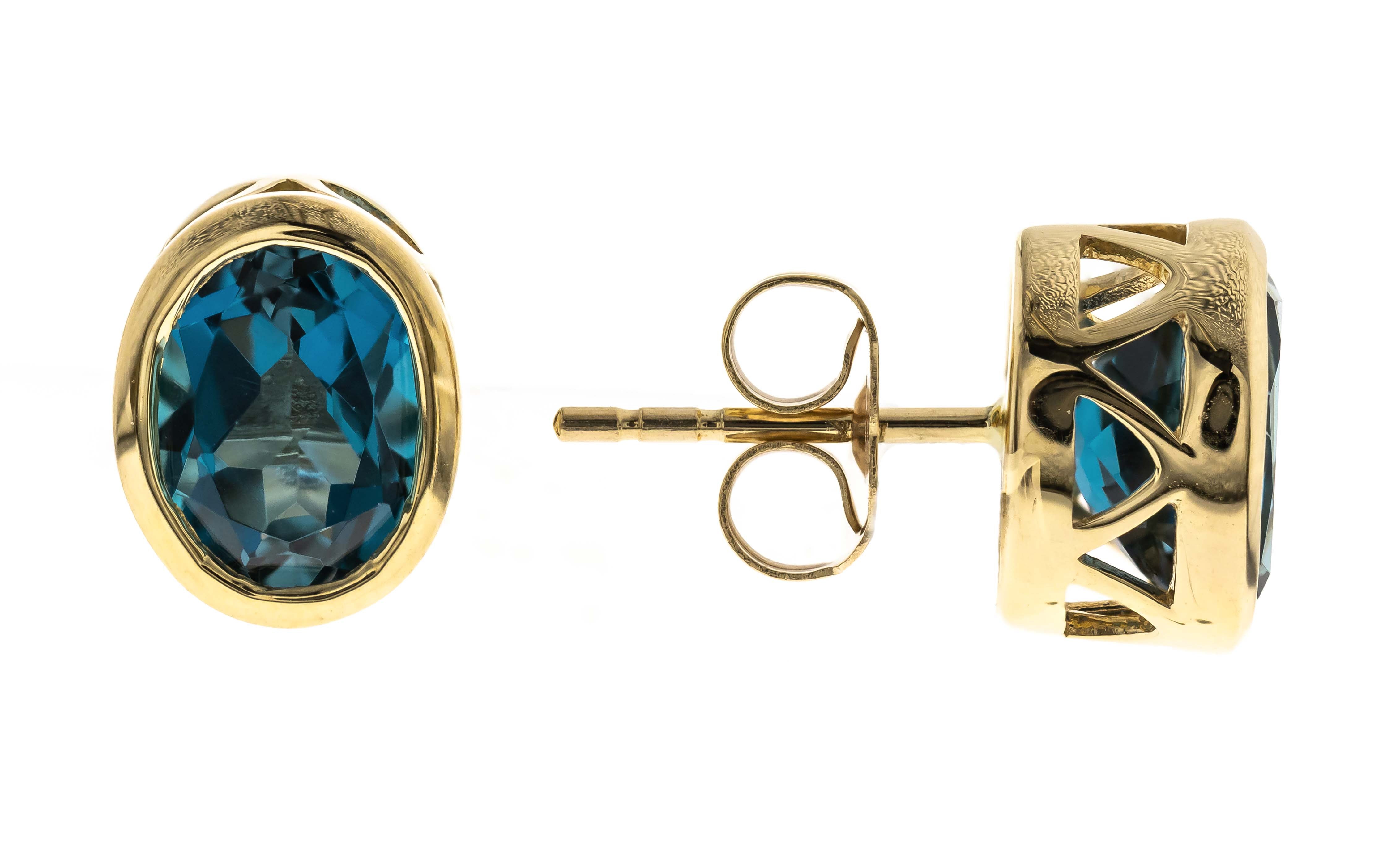 Juliette 10K Yellow Gold Oval-Cut Brazilian London Blue Topaz Earrings