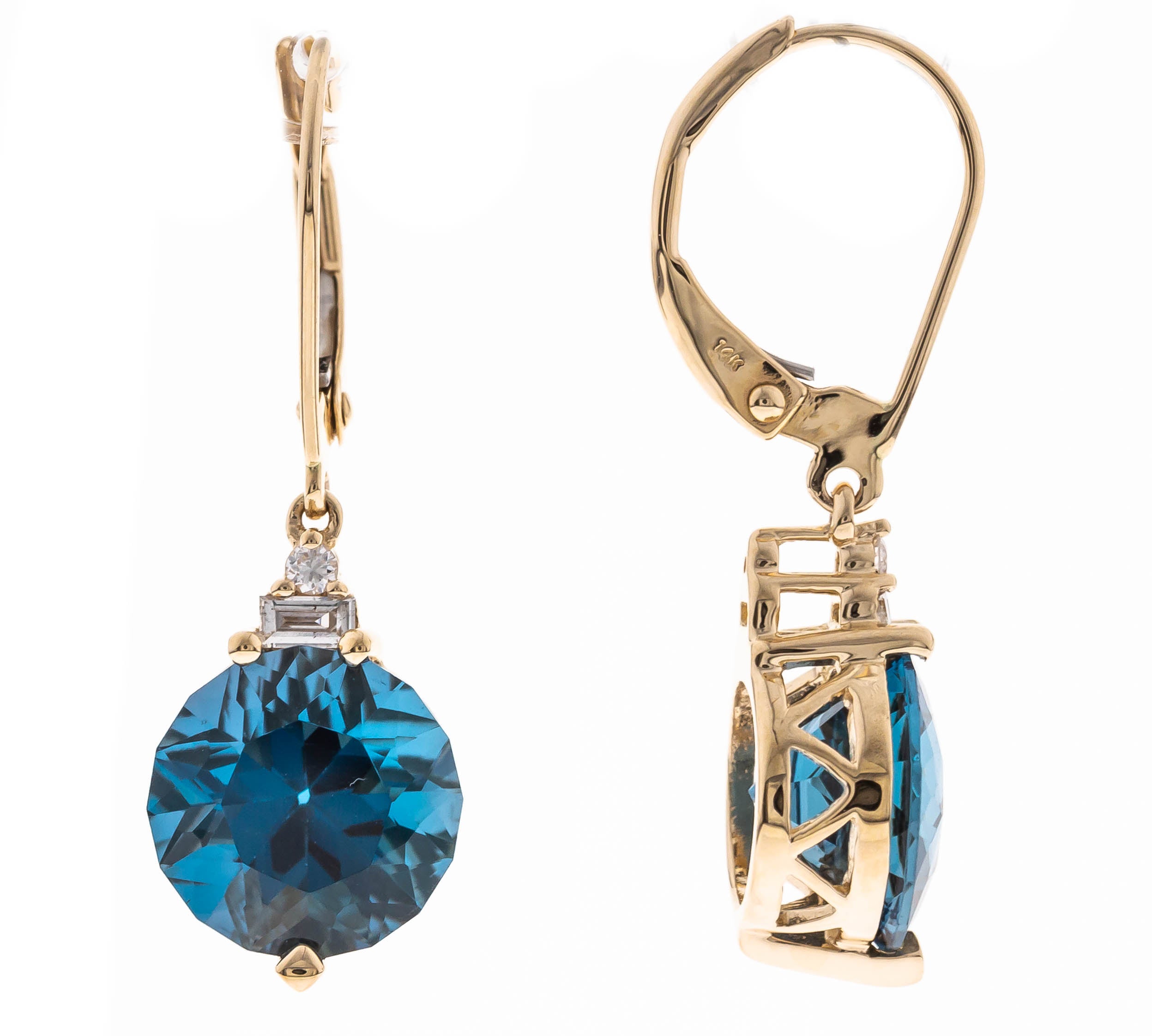 Gabriel 10K Yellow Gold Round-Cut Brazilian London Blue Topaz Earrings