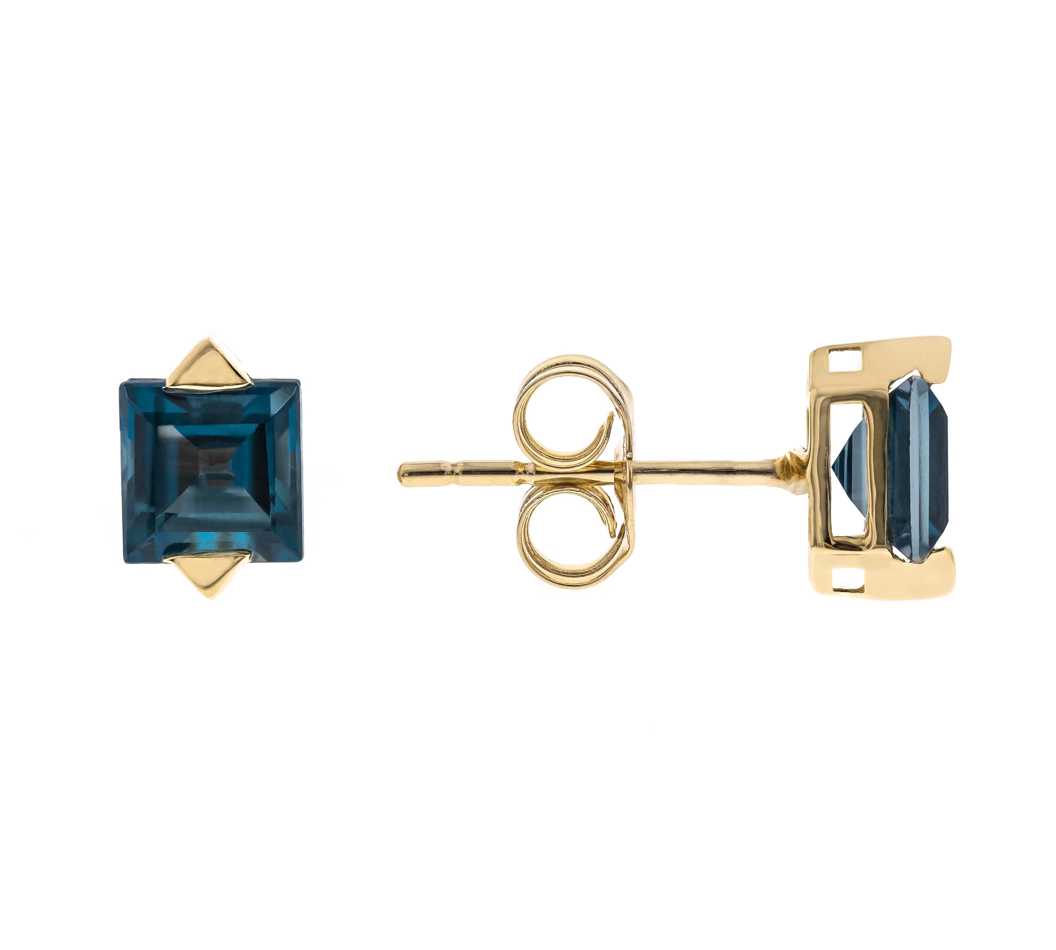Audrey 10K Yellow Gold Square-Cut Brazilian London Blue Topaz Earrings