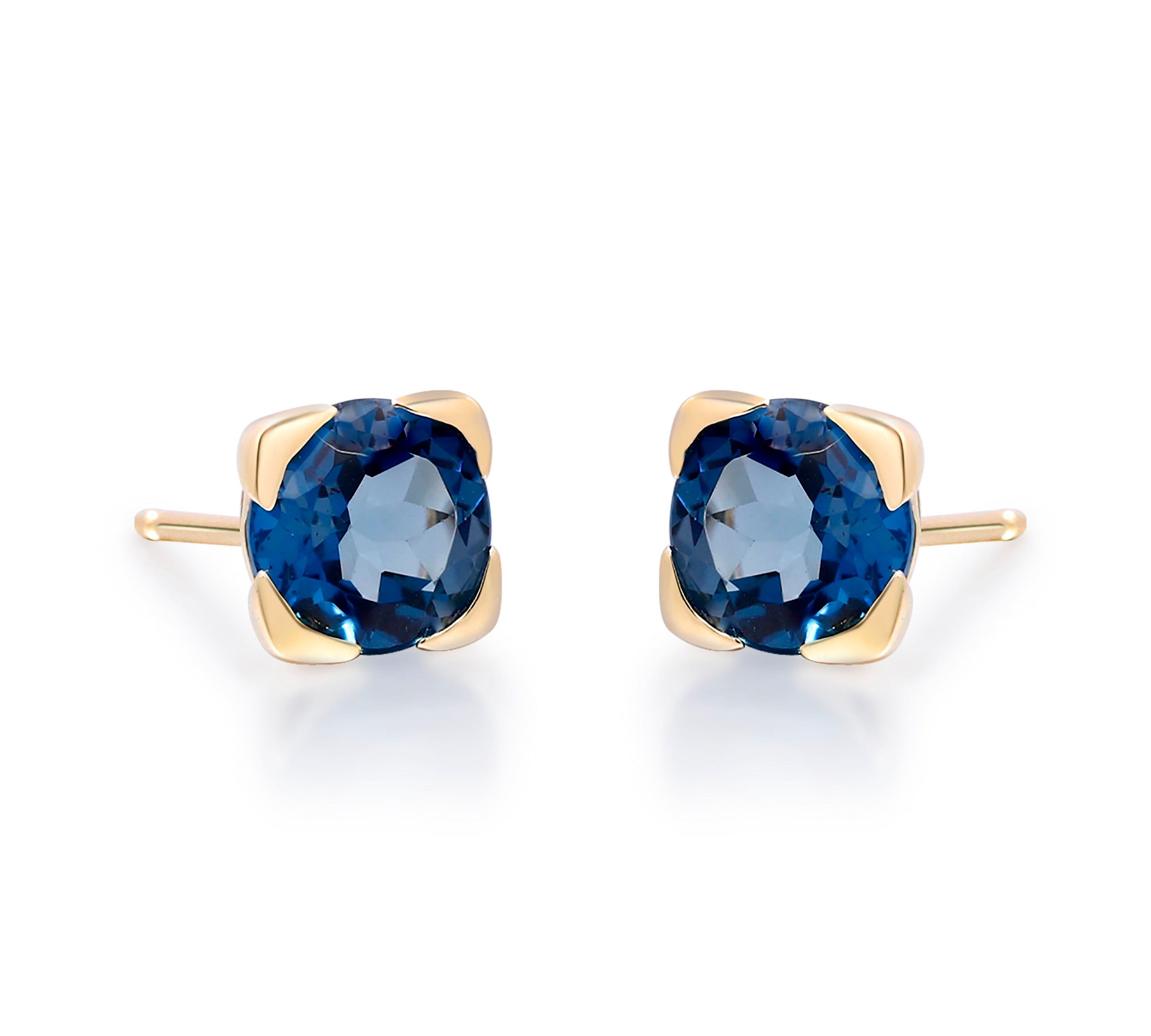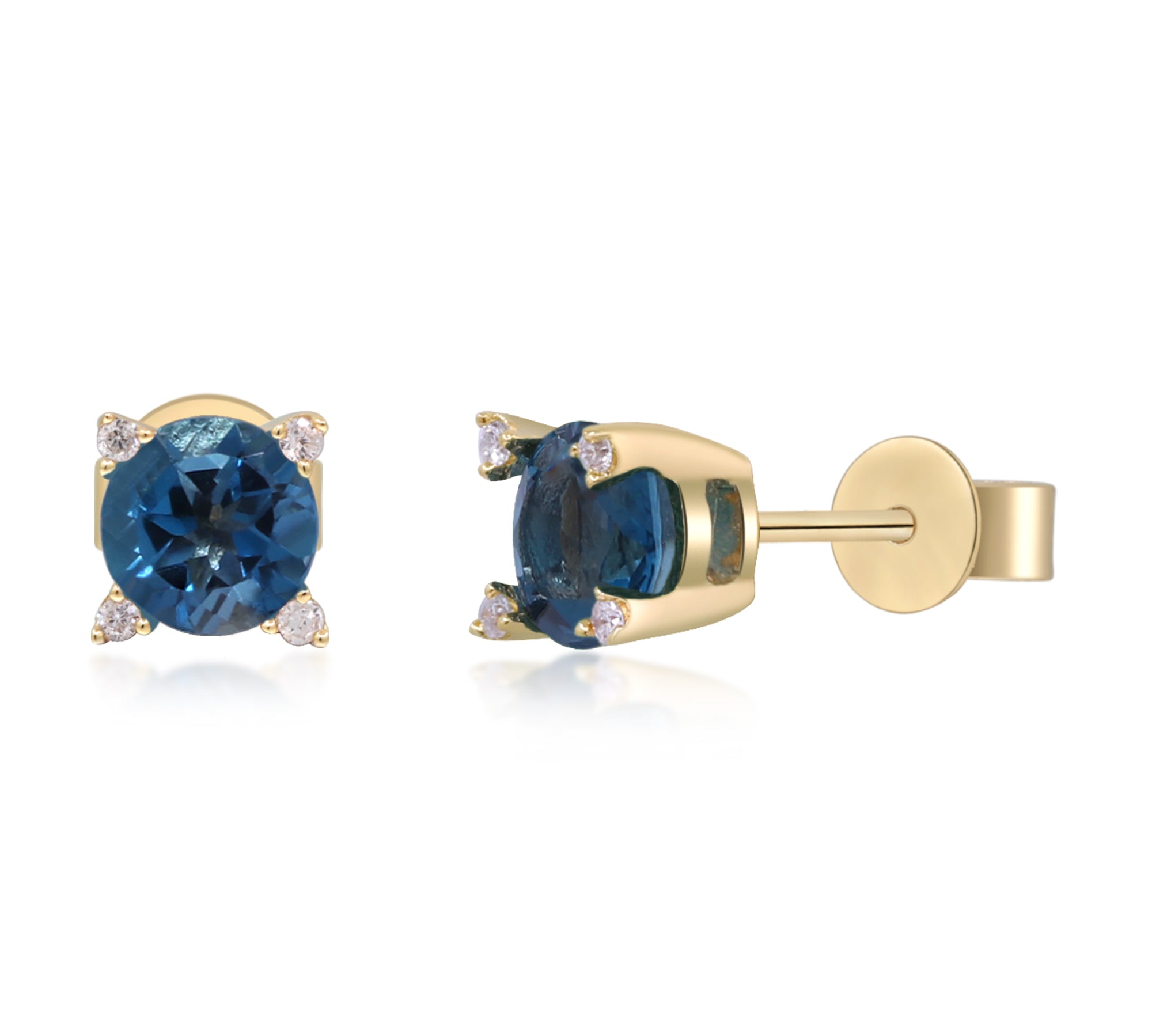 Aubrey 10K Yellow Gold Round-Cut London Blue Topaz Earring