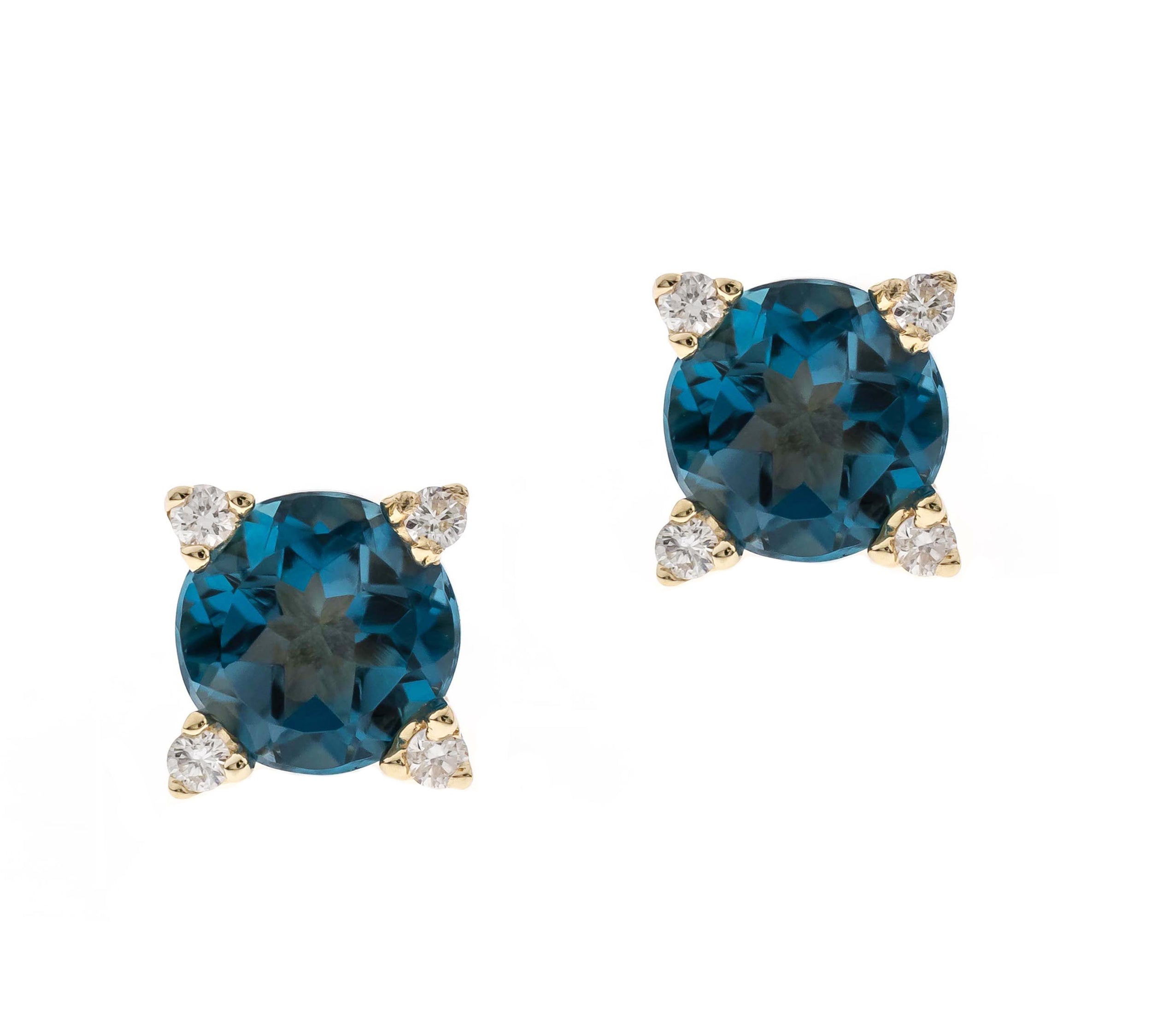Savannah 14K Yellow Gold Round-Cut Brazilian London Blue Topaz Earrings