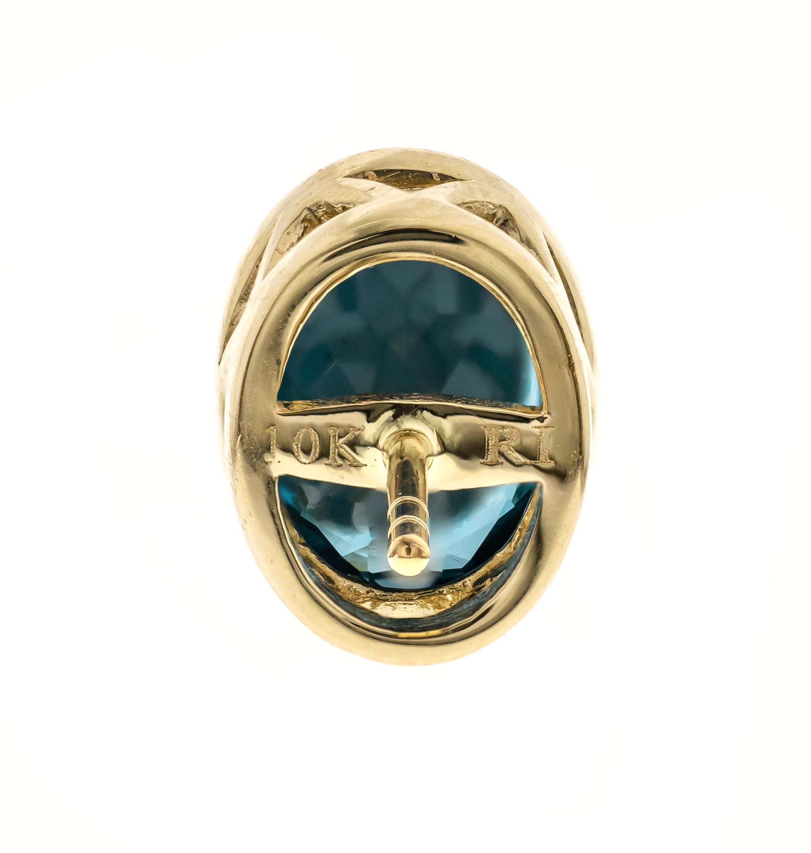 Decorate yourself in elegance with this Earring is crafted from 10K Yellow Gold by Gin & Grace Earring. This Earring is made up of Oval-Cut Brazilian London Blue Topaz (2 pcs) 3.13 carat. This Earring is weight 1.77 grams. This delicate Earring is polished to a high finish shine.