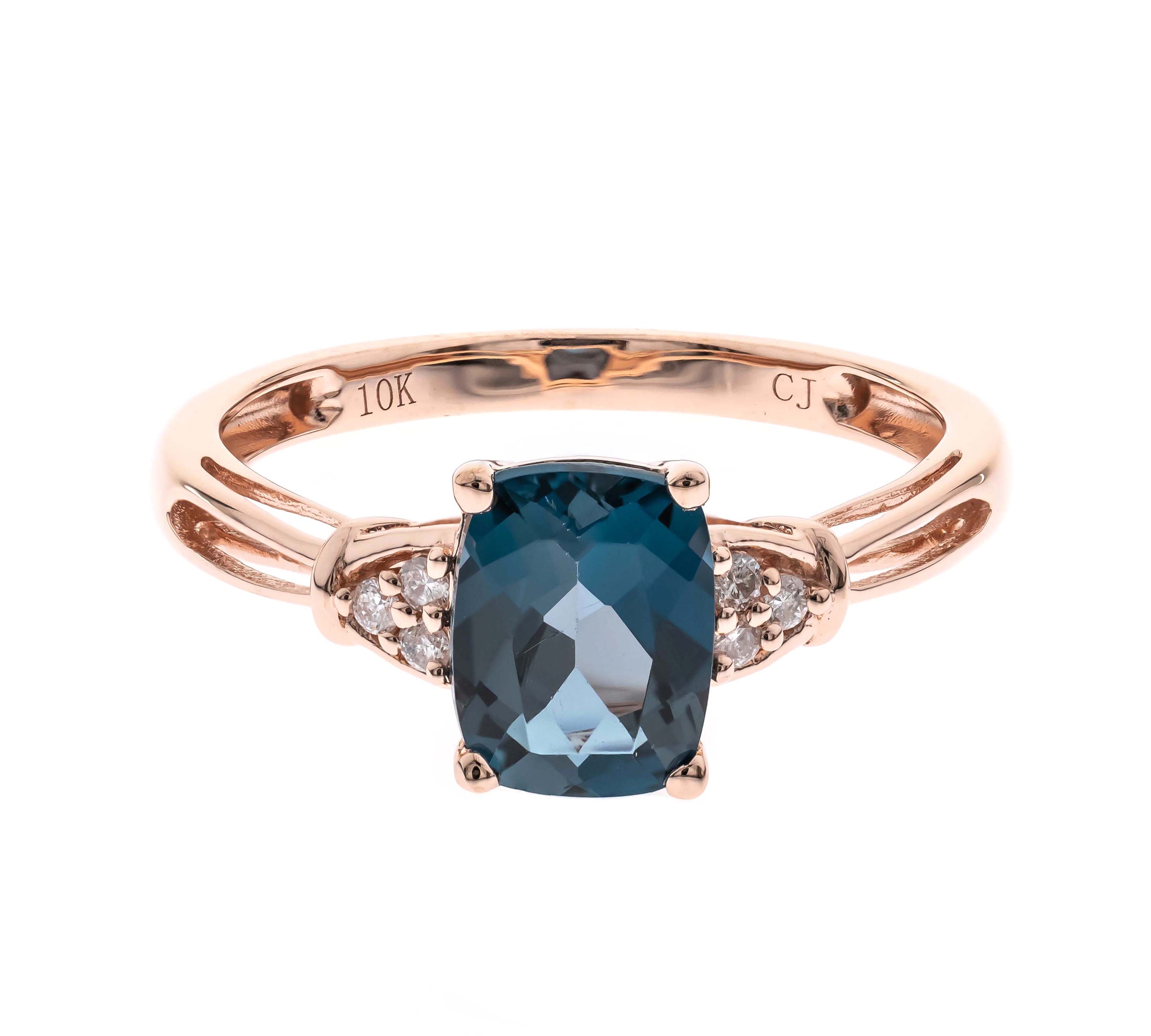 Karlee 10K Rose Gold Cushion-Cut Brazilian London Blue Topaz Ring