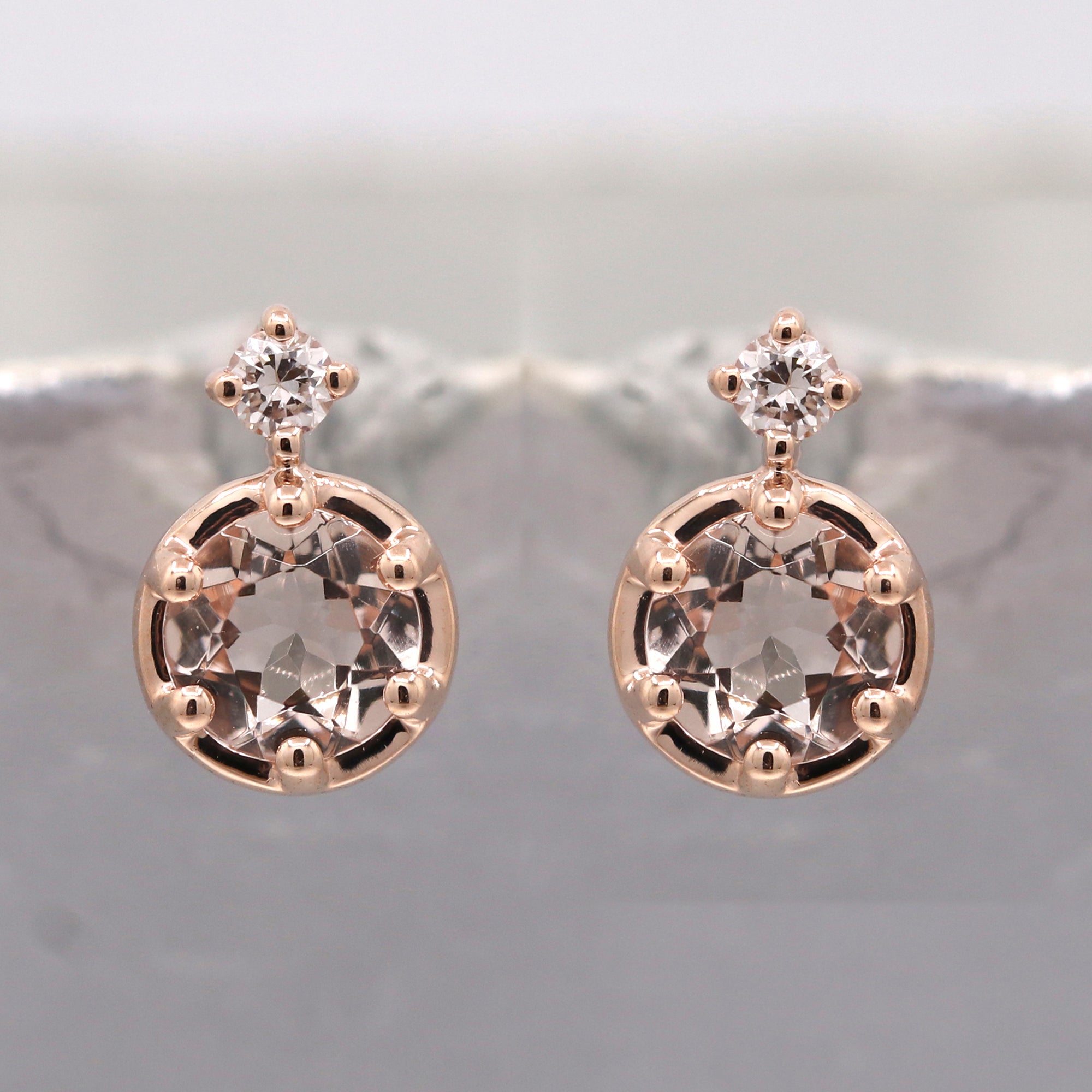 Decorate yourself in elegance with this Earring is crafted from 10K Rose Gold by Gin & Grace Earring. The jewelry boasts Round-Cut cabochon setting white color Natural Morganite (2 pcs) 0.84 Carat and Round-Cut prong setting Diamond (2 pcs) 0.08 Carat. This Earring is weight 1.28 grams. This delicate Earring is polished to a high finish shine. Simple Stud clasps keep these earrings securely fastened.