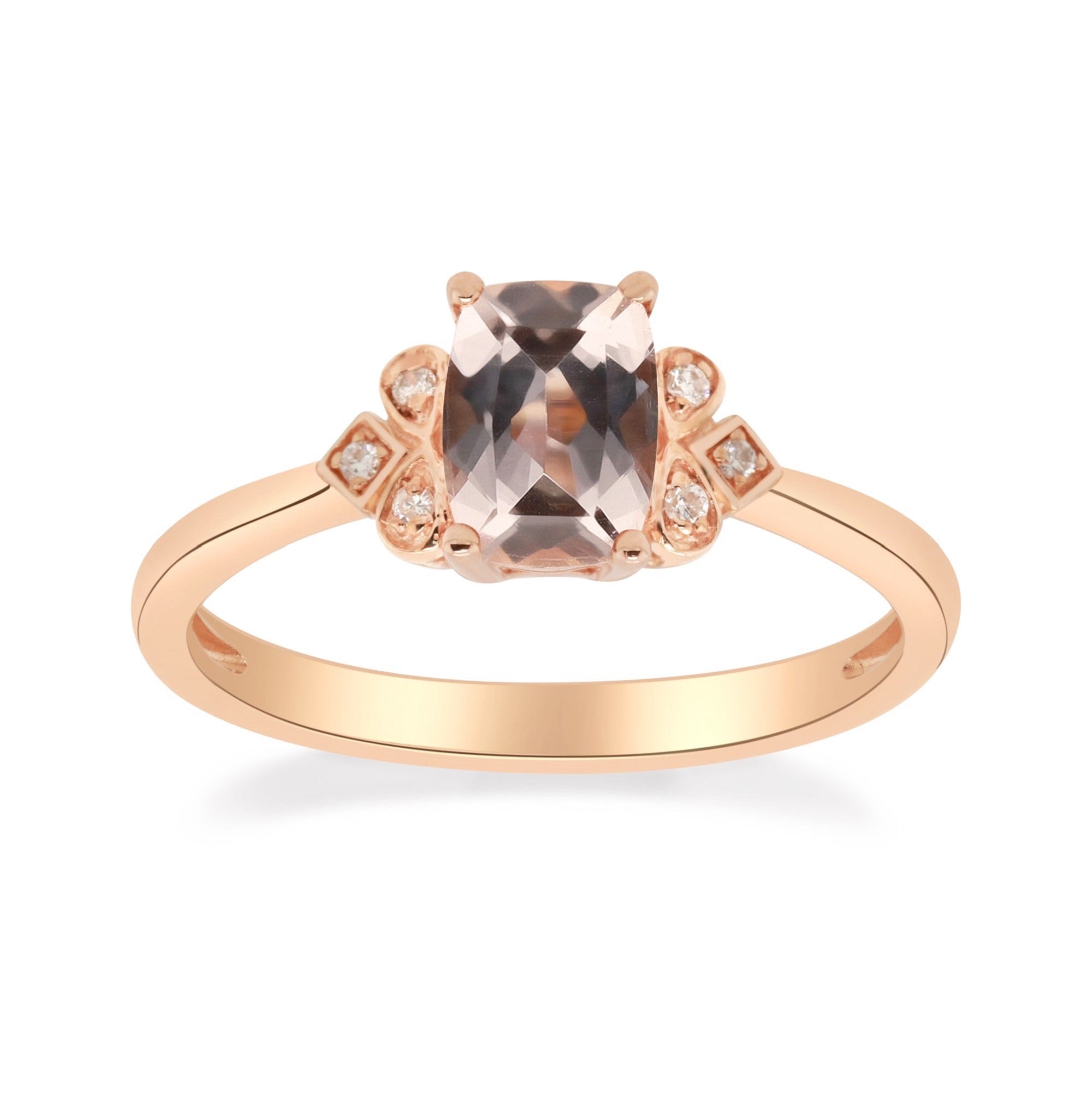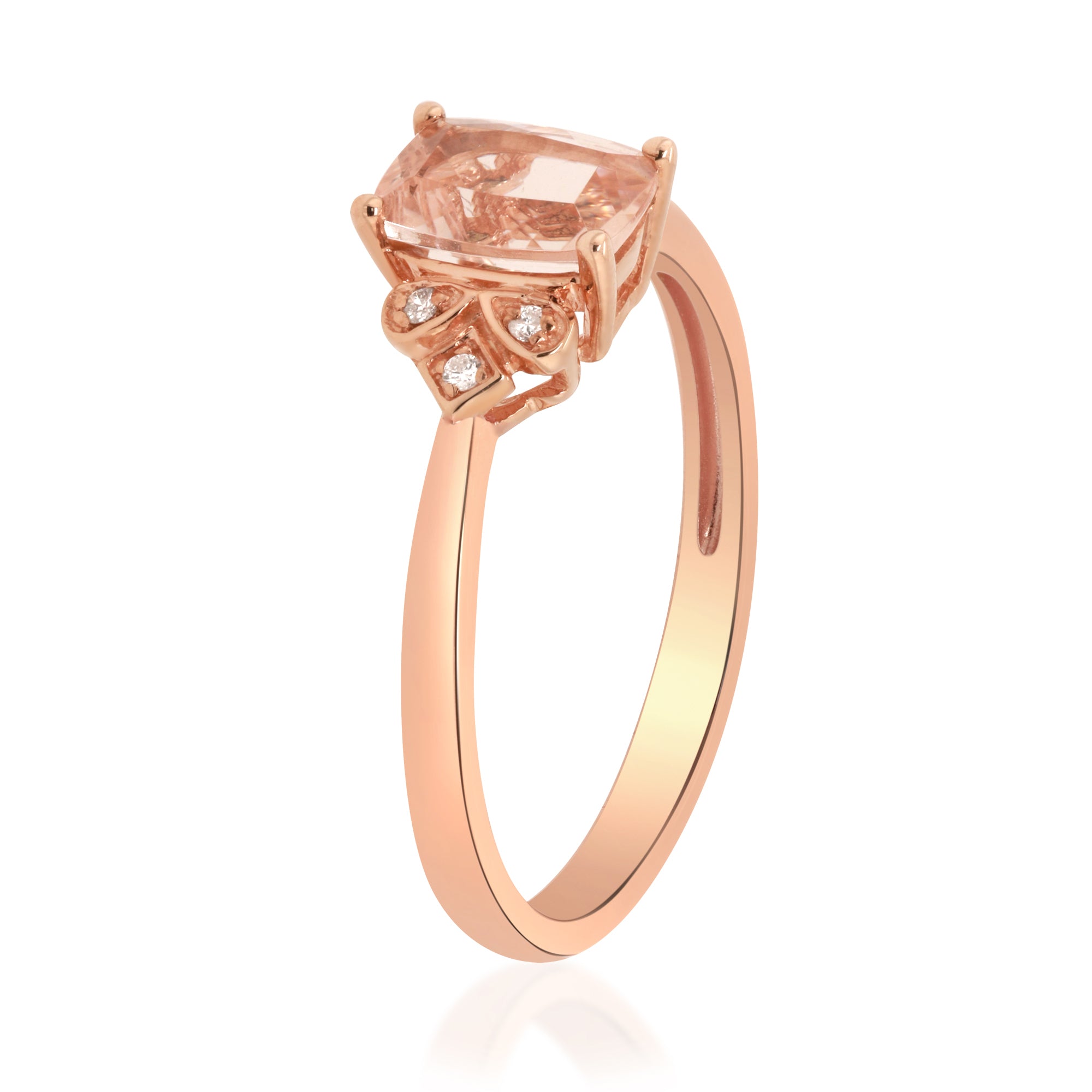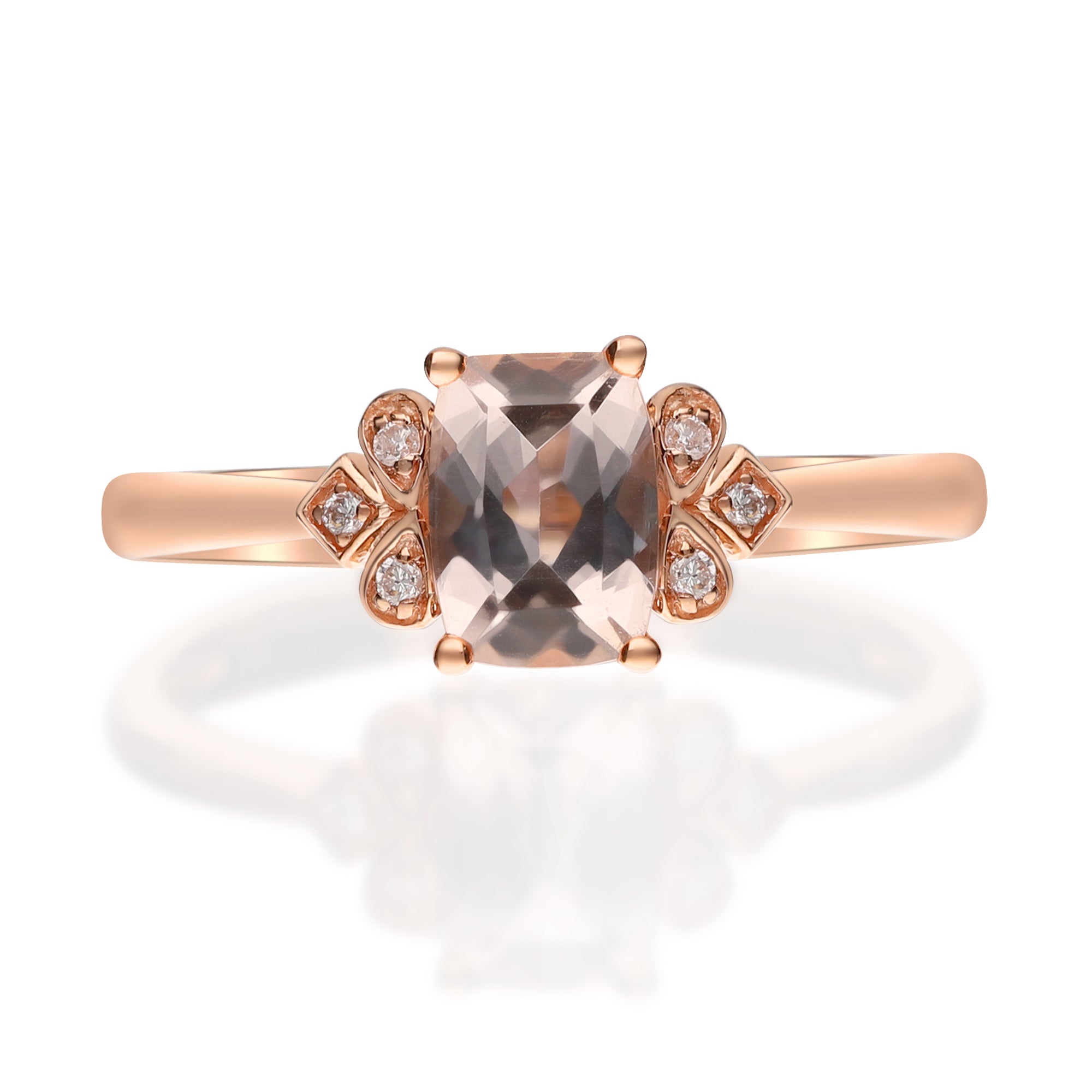 Stunning, timeless and classy eternity Unique ring. Decorate yourself in luxury with this Gin & Grace ring. The 10K Rose Gold jewelry boasts Cushion-Cut Prong Setting Genuine Madagascar Morganite (1pcs) 0.83 Carat and Round-Cut Prong Setting Diamond (6 pcs) 0.03 Carat accent stones for a lovely design. This ring is weight 1.82 grams. Crafted with 10k Rose Gold, this delicate Ring is polished to a high finish shine