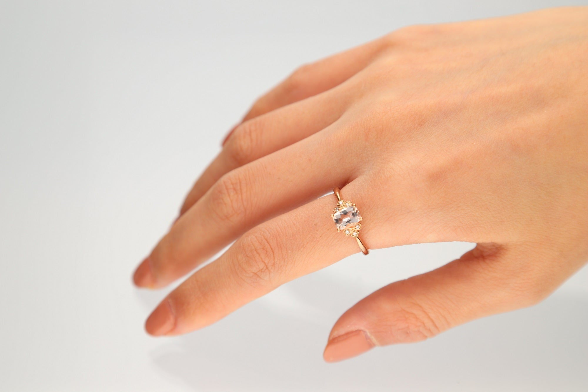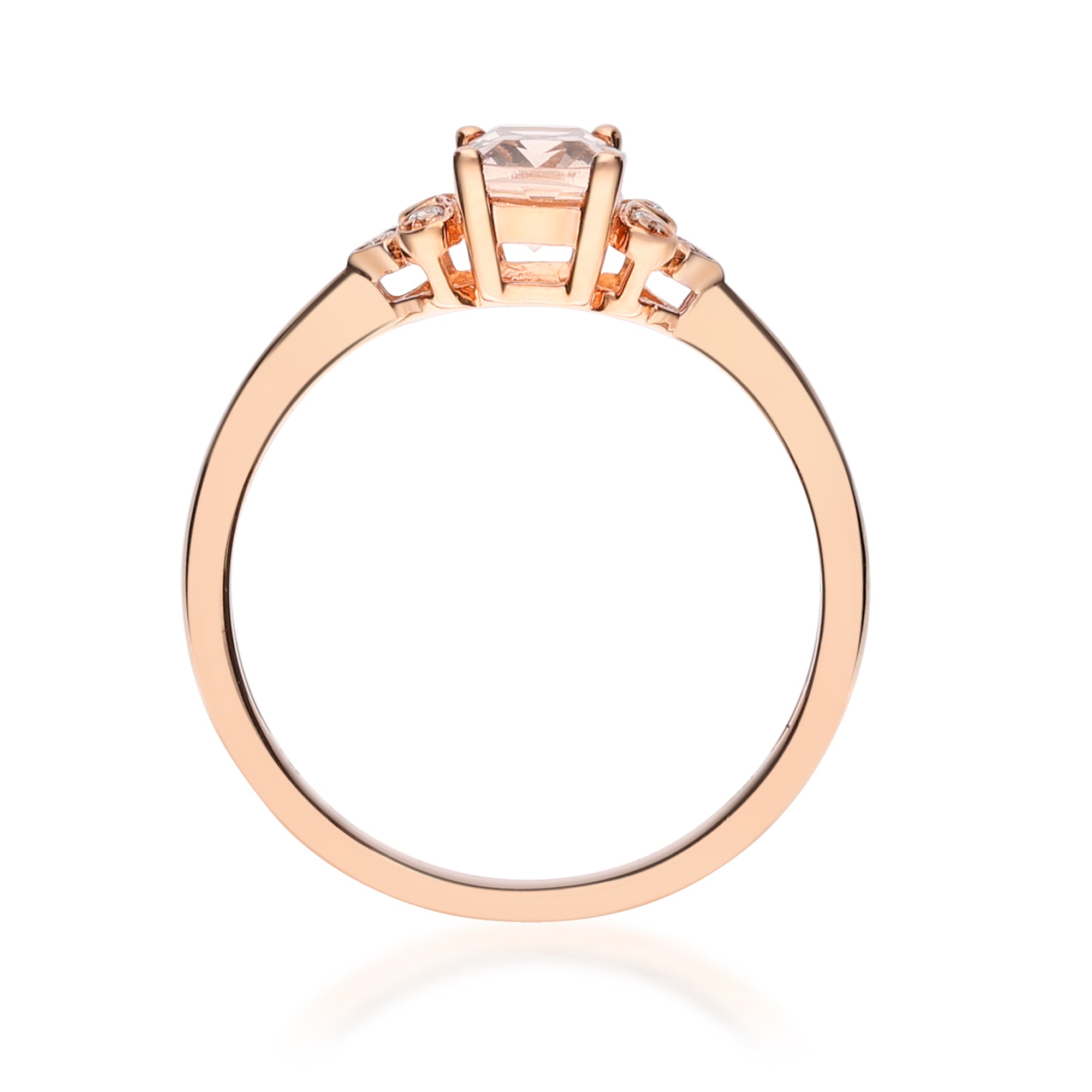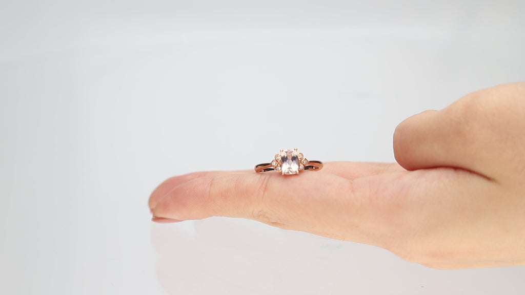 Stunning, timeless and classy eternity Unique ring. Decorate yourself in luxury with this Gin & Grace ring. The 10K Rose Gold jewelry boasts Cushion-Cut Prong Setting Genuine Madagascar Morganite (1pcs) 0.83 Carat and Round-Cut Prong Setting Diamond (6 pcs) 0.03 Carat accent stones for a lovely design. This ring is weight 1.82 grams. Crafted with 10k Rose Gold, this delicate Ring is polished to a high finish shine