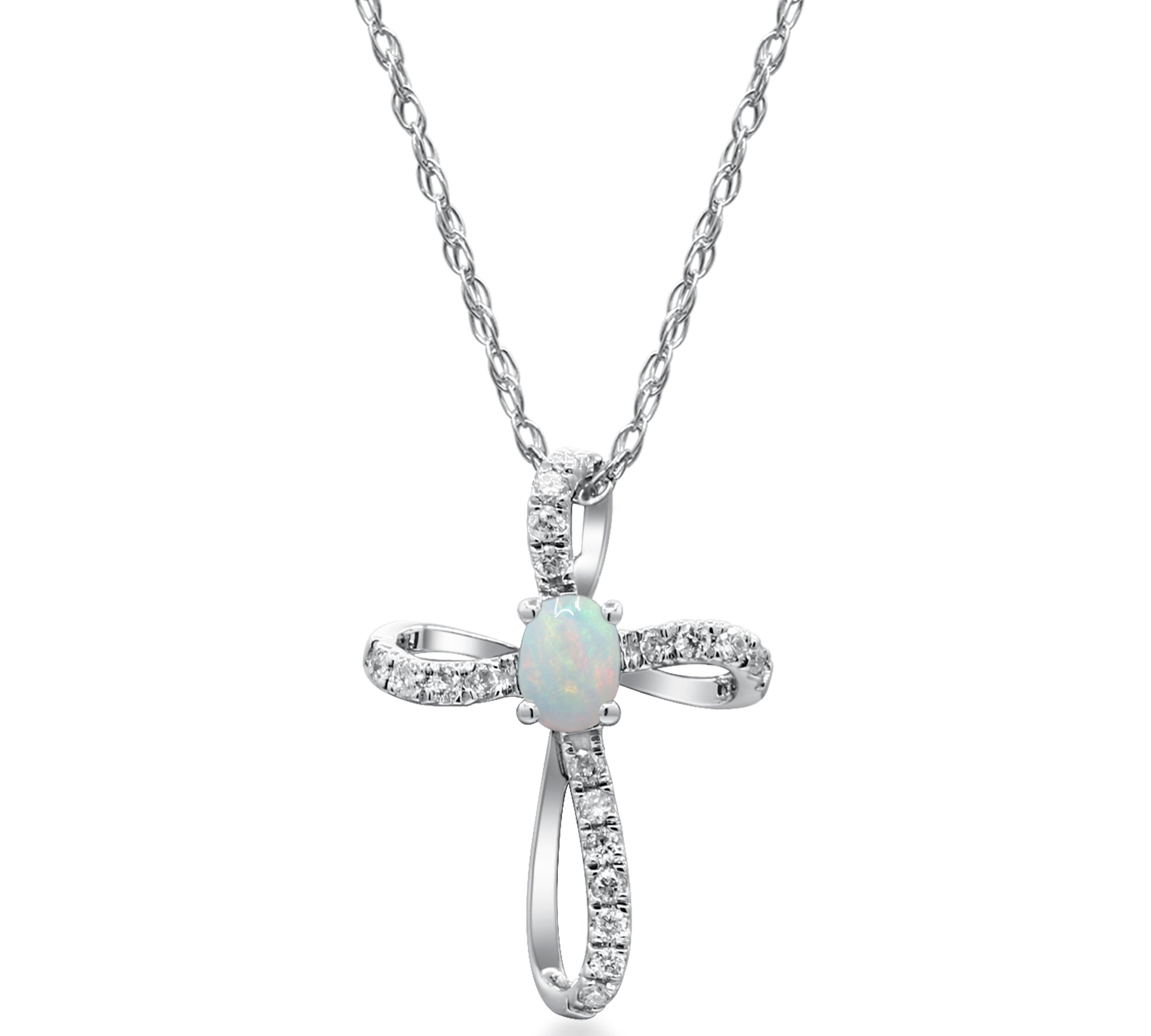 Sarah 10K White Gold Oval-Cut Opal Pendant