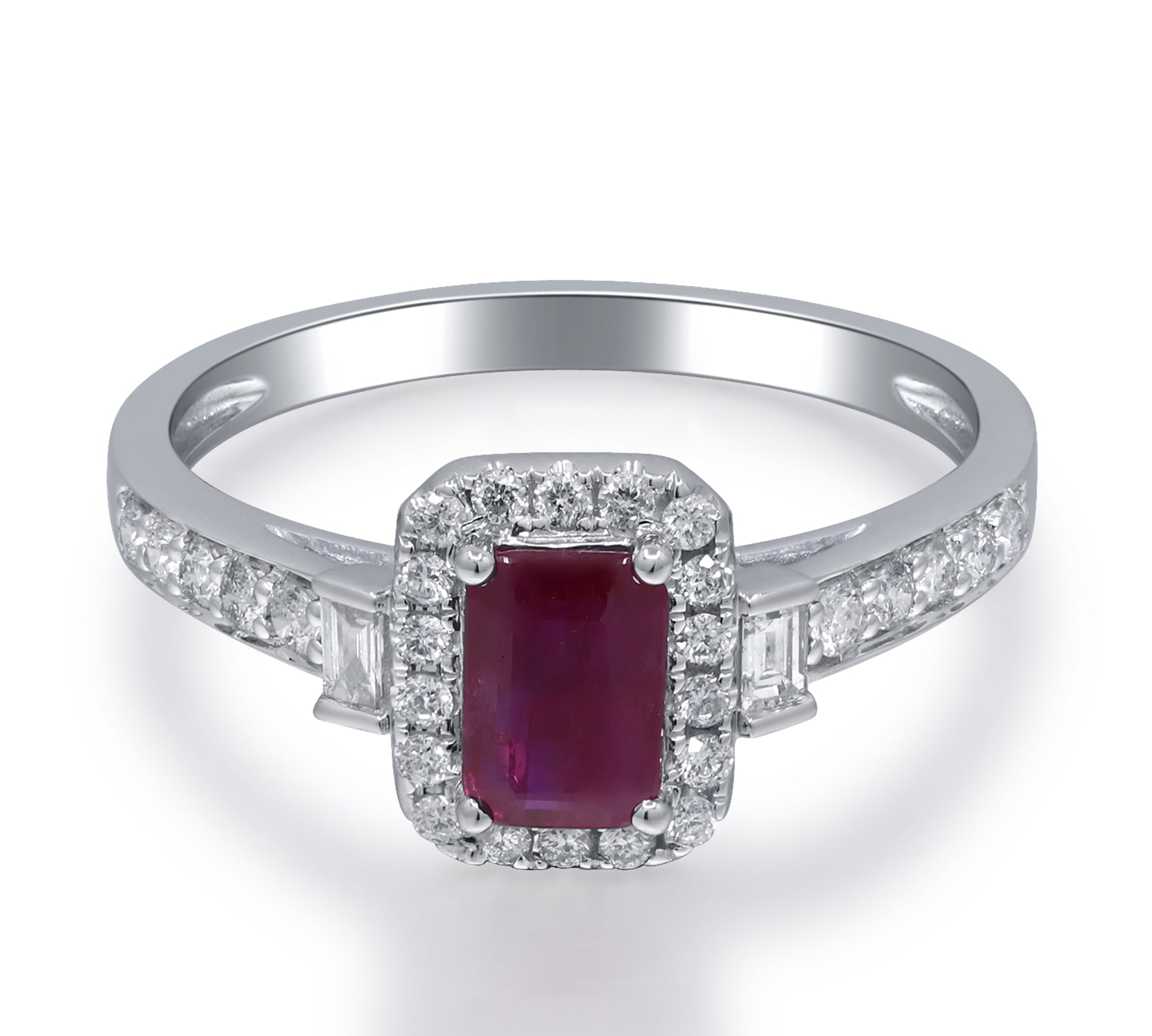 Emersyn 14K White Gold Emerald-Cut Mozambique Ruby Ring