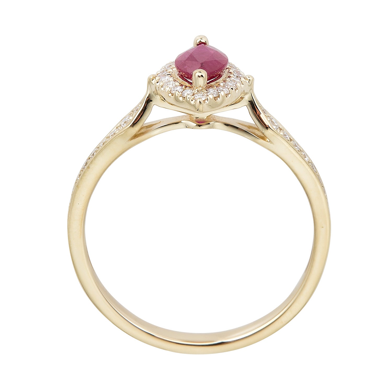 Stunning, timeless and classy eternity Unique Ring. Decorate yourself in luxury with this Gin & Grace Ring. The 10K Yellow Gold jewelry boasts Marquise-Cut Prong Setting Natural Mozambique Ruby (1 pc) 0.65 Carat, along with Natural Round cut white Diamond (38 Pcs) 0.17 Carat, accent stones for a lovely design. This Ring is weight 1.84 grams. Crafted with 10K Yellow Gold, this delicate Ring is polished to a high finish shine.