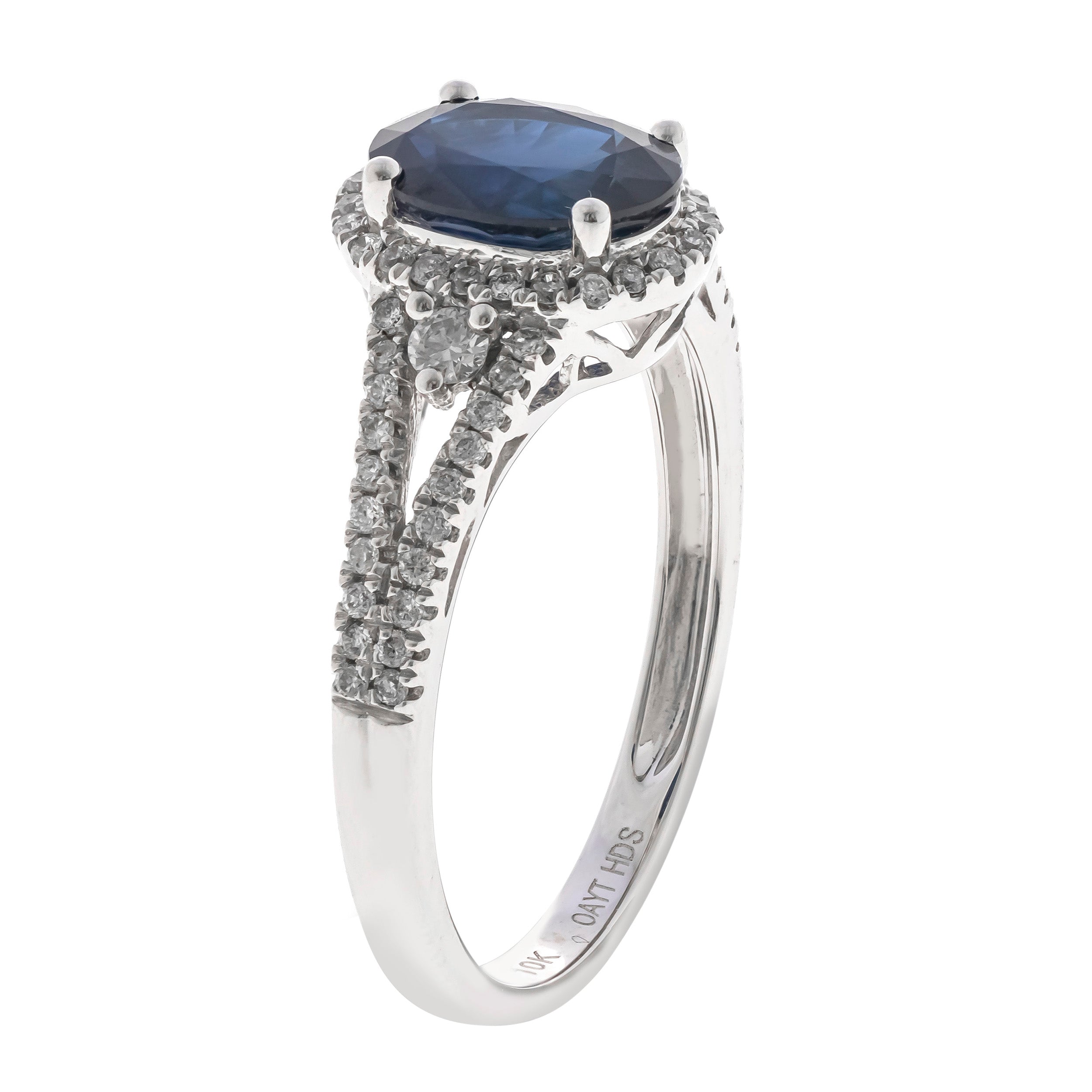 Decorate yourself in elegance with this Ring is crafted from 10K White Gold by Gin & Grace. This Ring is made up of Oval-Cut Blue Sapphire (1 pcs) 1.54 carat and Round-cut White Diamond (66 Pcs) 0.32 Carat. This Ring is weight 2.33 grams. This delicate Ring is polished to a high finish shine.