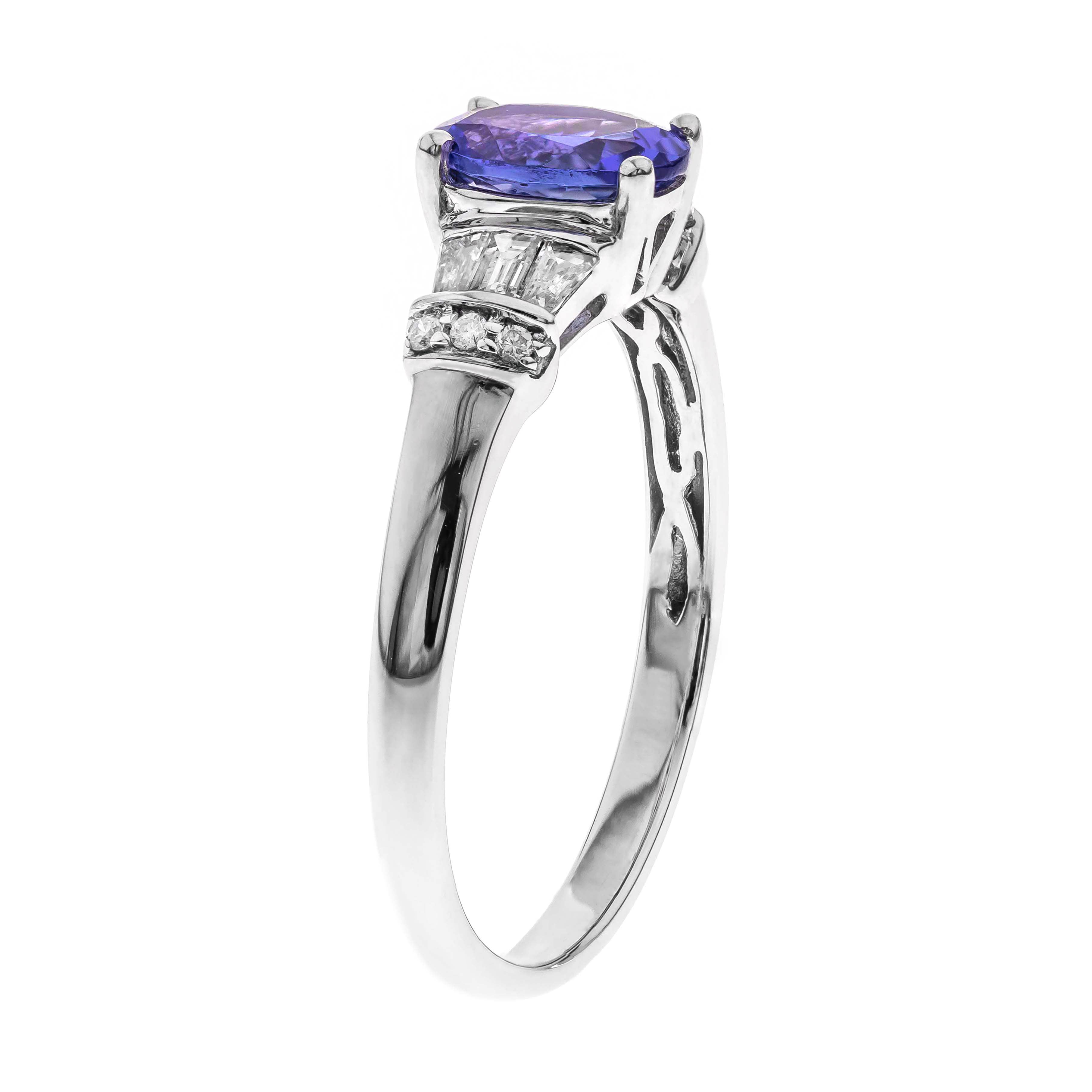 The elegant ring with a Tanzanian Tanzanite gemstone color boasts, baguette and round-cut Gin & Grace Natural diamonds to sparkle up your daily attire or formal gowns. Complemented by the high-polish finish of the 10K White gold by Gin & Grace, this diamond ring with a oval-cut gemstone captures attention right away.