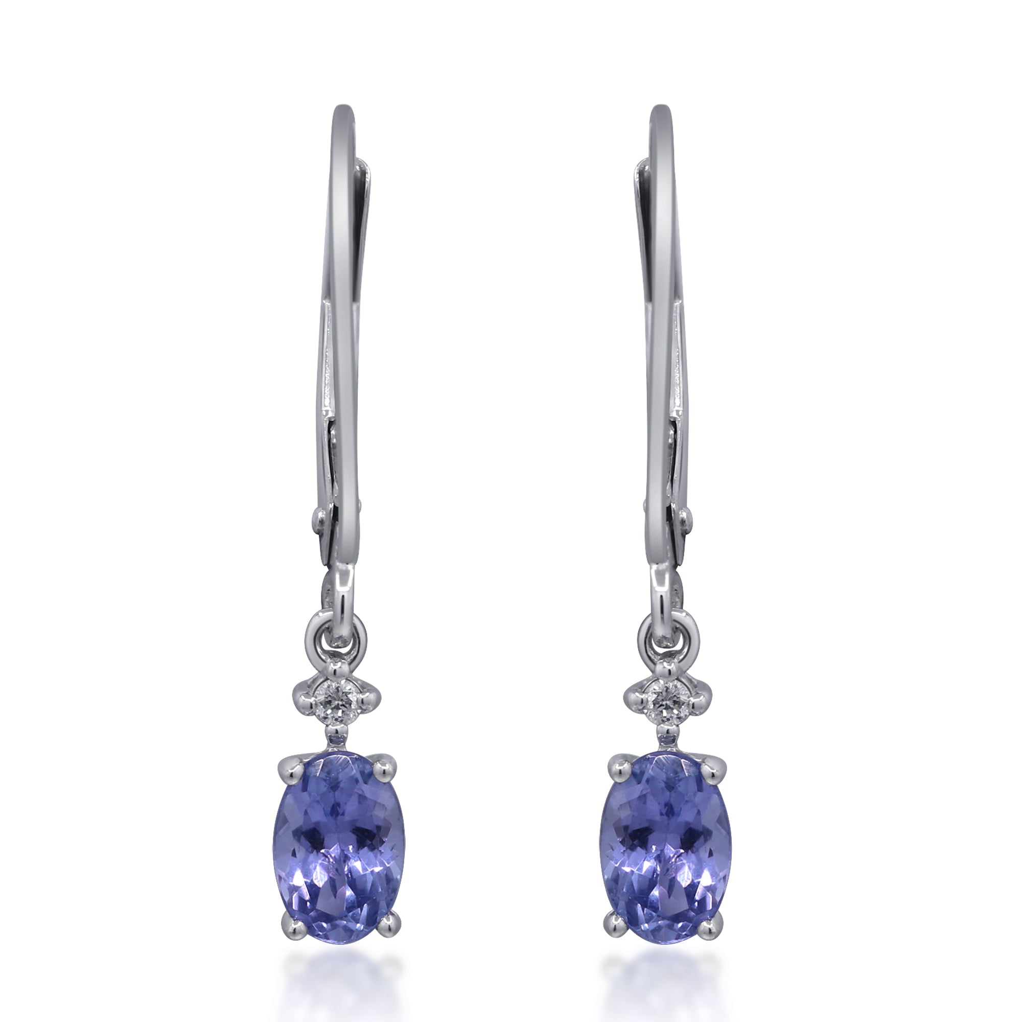 Decorate yourself in elegance with this Earring is crafted from 10K White Gold by Gin & Grace. This Earring is made up of Tanzanite Oval-Cut (2 pcs) 0.74 carat, Round-cut White Diamond (2 Pcs) 0.03 Carat. This Earring is weight 0.93 grams. This delicate Earring is polished to a high finish shine.