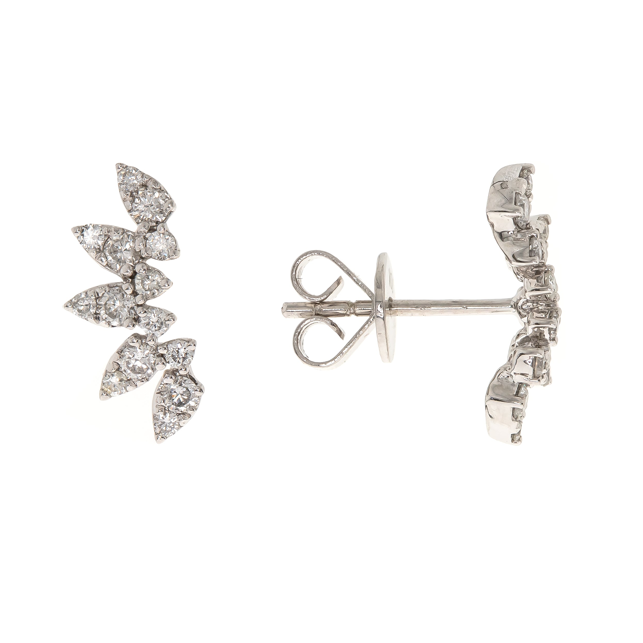 Decorate yourself in elegance with this Earrings is crafted from 14K White Gold by Gin & Grace. This Earrings is made up of Round-cut White Diamond (28 Pcs) 0.45 Carat. This Earrings is weight 1.85 grams. This delicate Earrings is polished to a high finish shine.