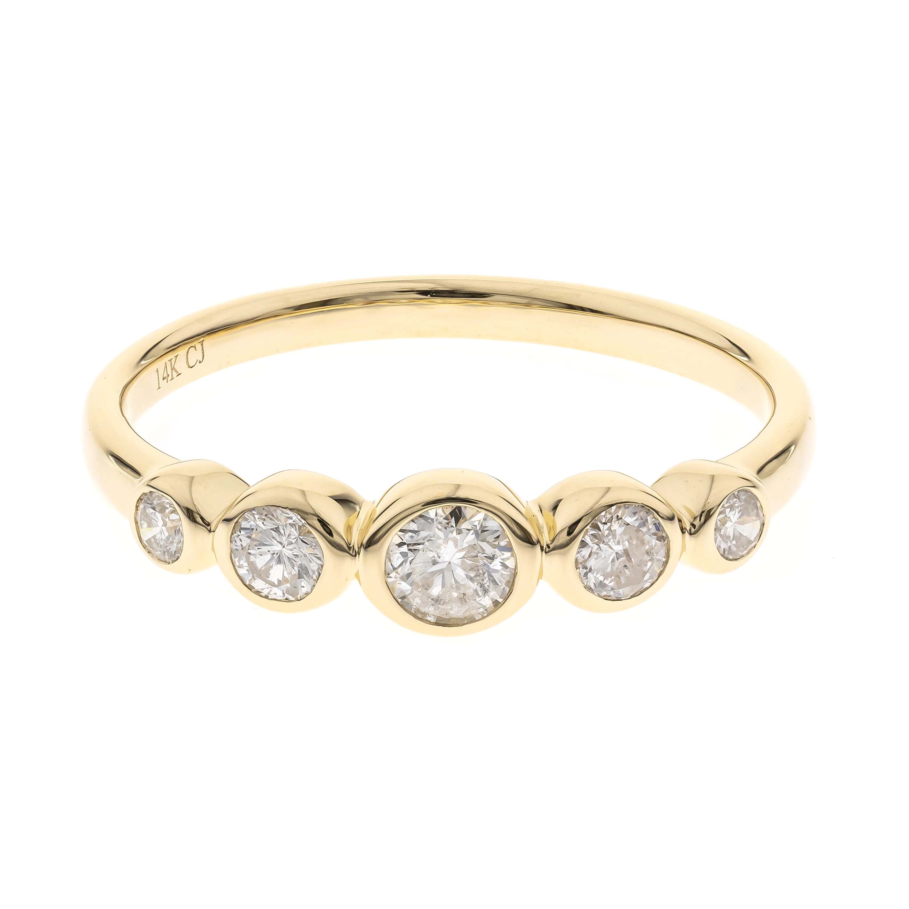 Decorate yourself in elegance with this Ring is crafted from 14-karat Yellow Gold by Gin & Grace. This Ring is made up of round-cut white diamond (1 pcs) 0.19 carat and round-cut White Diamond (4 Pcs) 0.23 grams. This Ring is weight 2.12 grams. This delicate Ring is polished to a high finish shine.