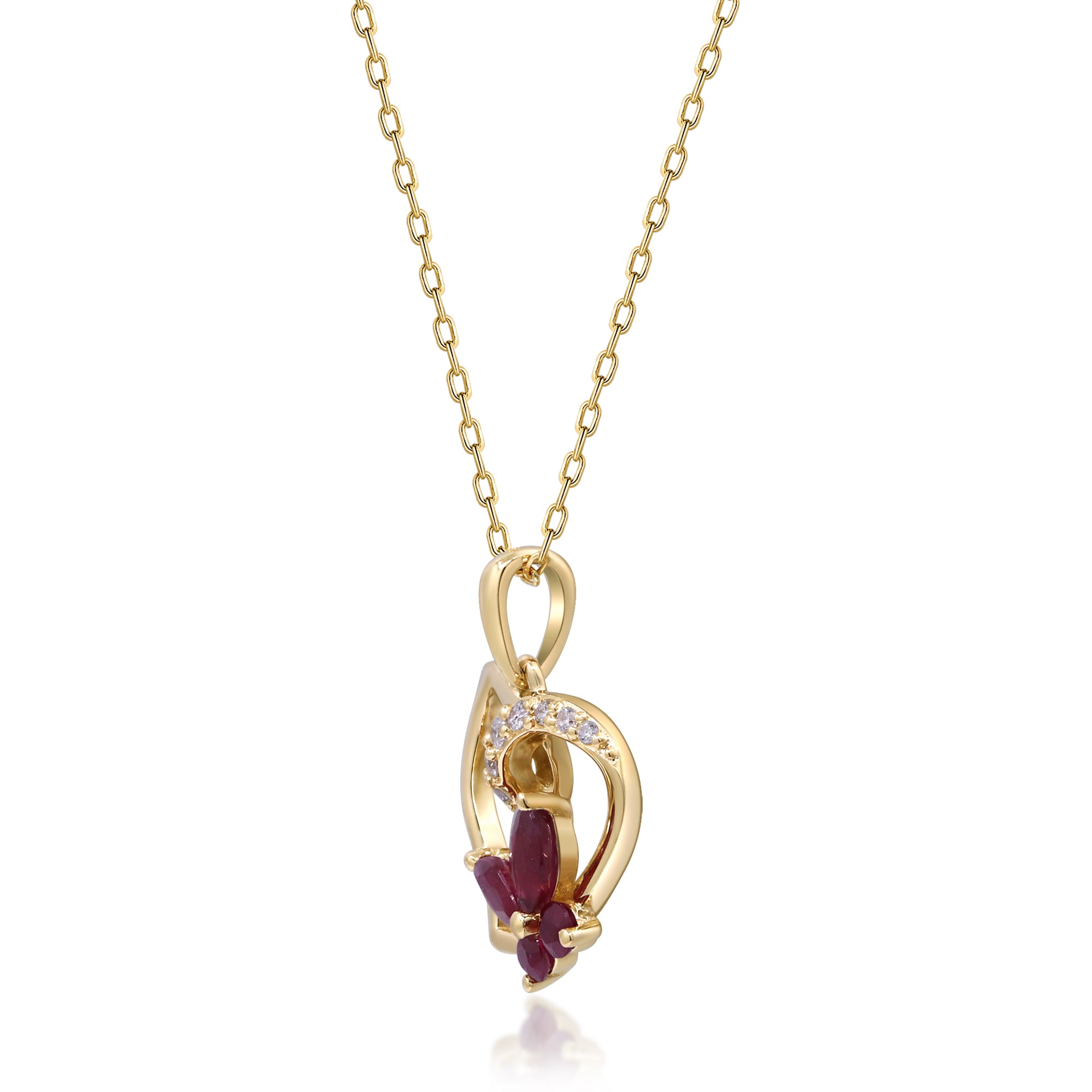 Stunning, timeless and classy eternity Unique Pendant. Decorate yourself in luxury with this Gin & Grace Pendant. This Pendant is made up of Marquise-Cut Prong Setting Genuine Mozambique Ruby (4 pc) 0.29 Carat and Round-Cut Prong Setting Natural Diamond (7 pcs) 0.04 Carat accent stones for a lovely design. This pendant is weight 1.76 grams. The pendant is crafted of shining 14-karat Yellow Gold and is completed by a highly polished finish.