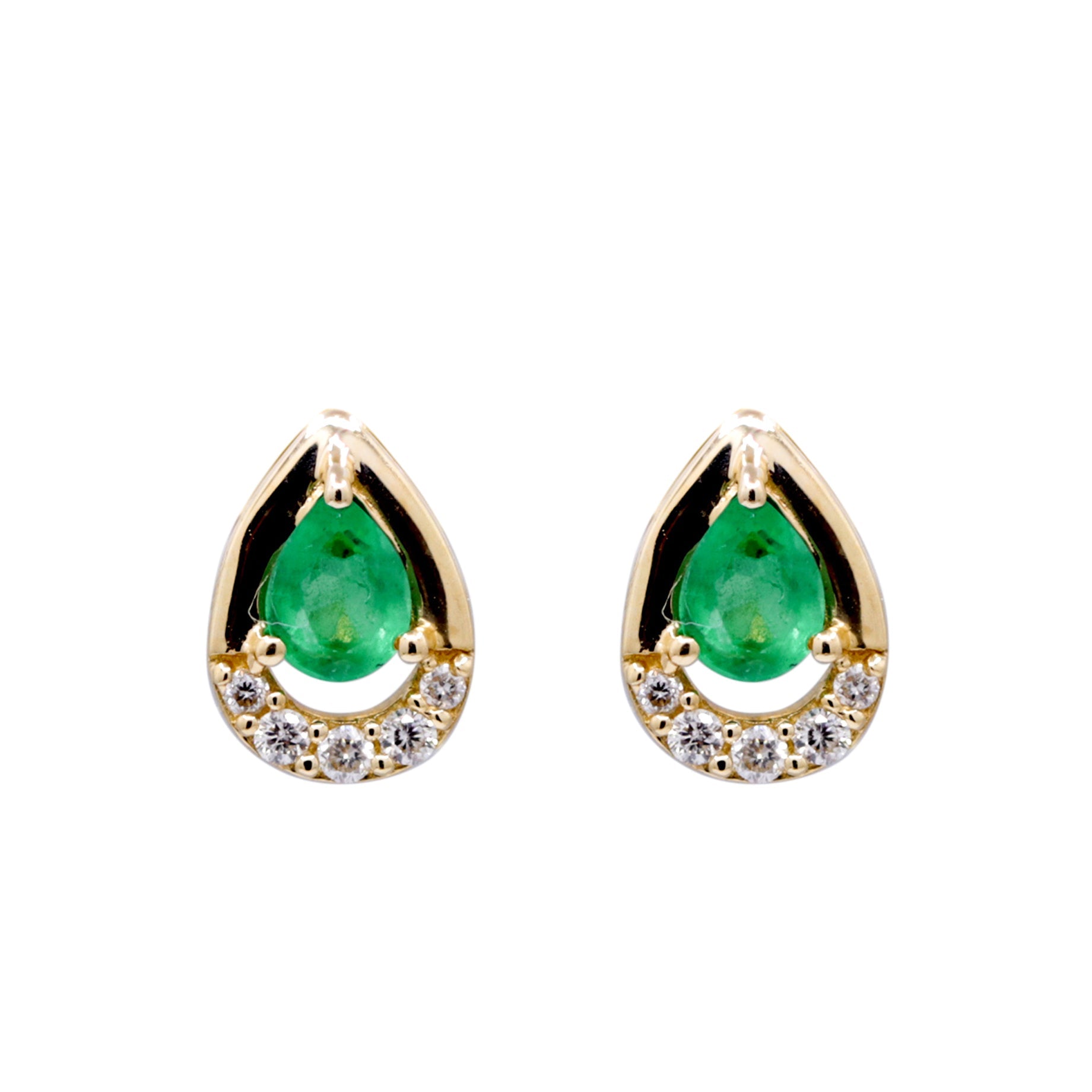 Decorate yourself in elegance with this Earring crafted from 14K Yellow Gold by Gin & Grace. This Earring is made up of an Emerald Pear-cut (2 pcs) 0.25 carat and Round-cut White Diamond (10 Pcs) 0.06 Carat. This Earring weighs 1.08 grams. This delicate Earring is polished to a high finish shine.