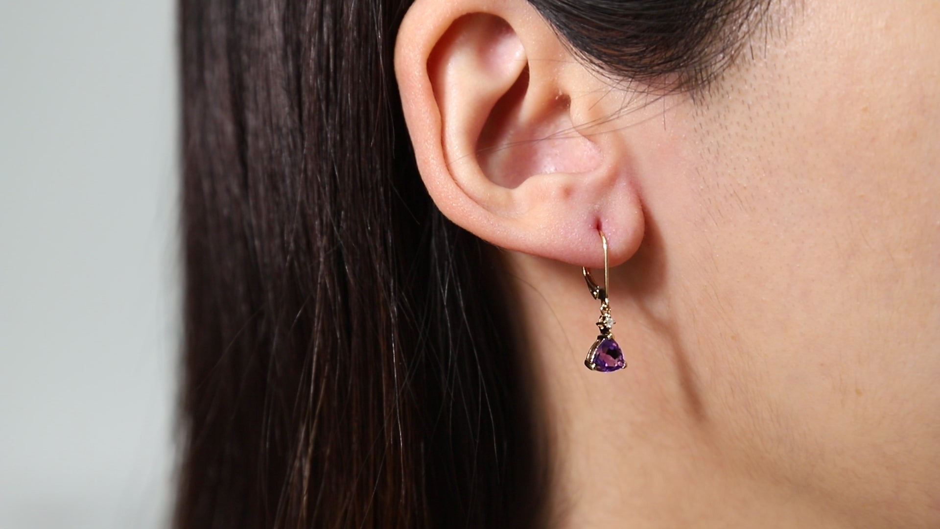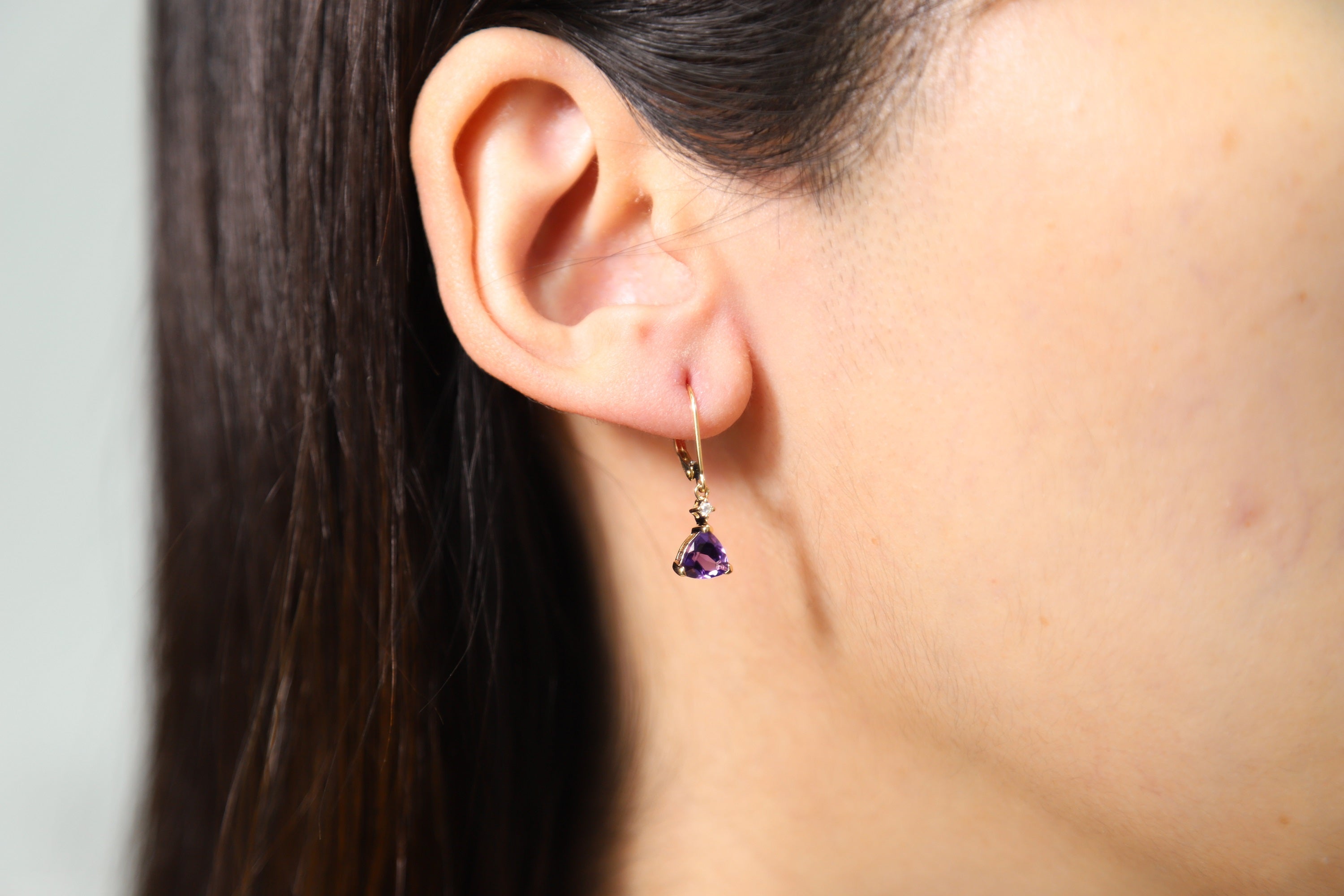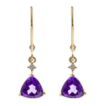 Decorate yourself in elegance with this Earring is crafted from 14K Yellow Gold by Gin & Grace Earring. The jewelry boasts 6MM Trillion-Cut prong setting Brazilian Amethyst (2 pcs) 1.34 Carat and Round-Cut prong setting Diamond (2 pcs) 0.03 Carat. This Earring is weight 1.18 grams. This delicate Earring is polished to a high finish shine. Simple lever back clasps keep these earrings securely fastened.