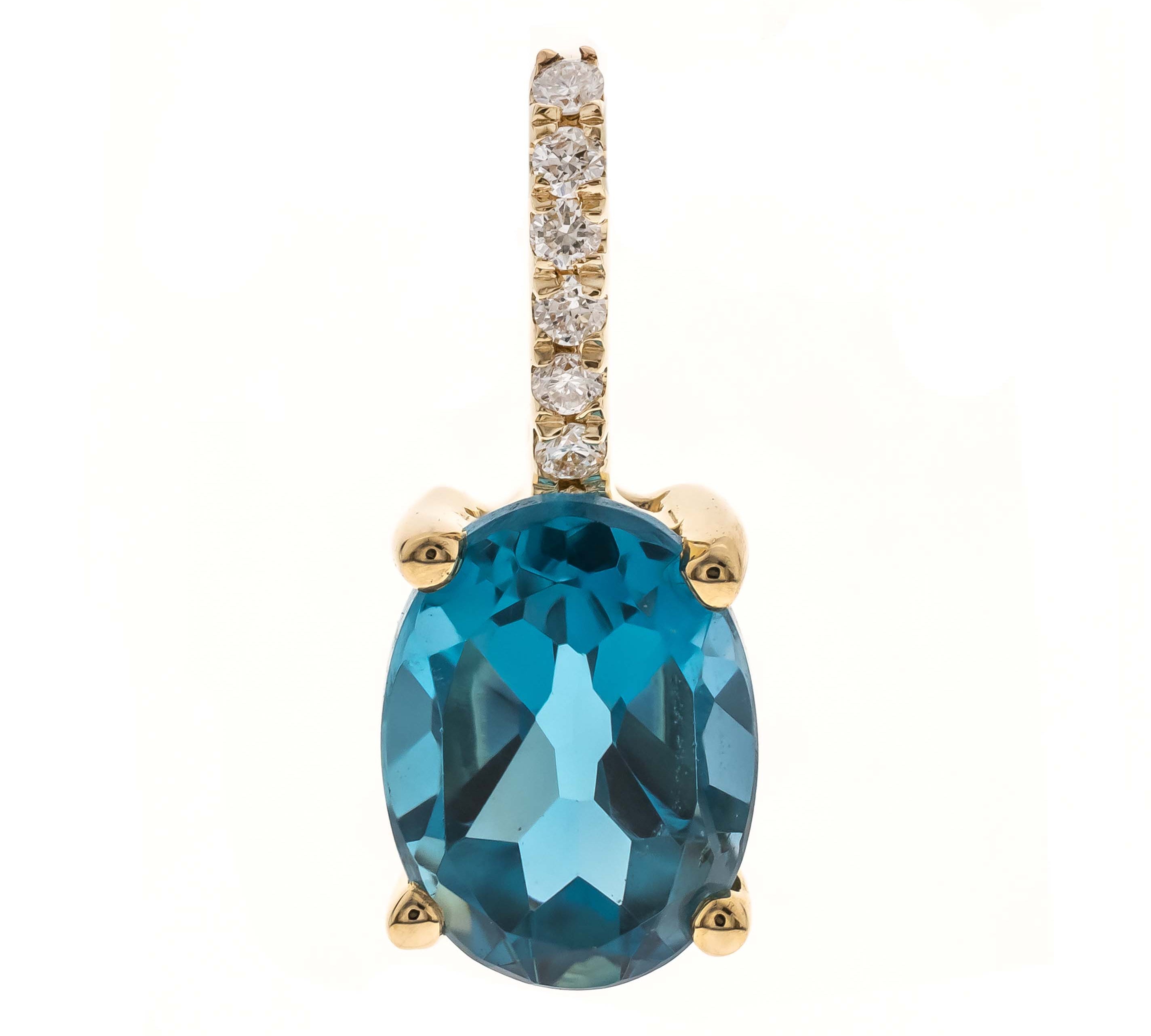 Emilia 10K Yellow Gold Oval-Cut Brazilian London Blue Topaz Pendant