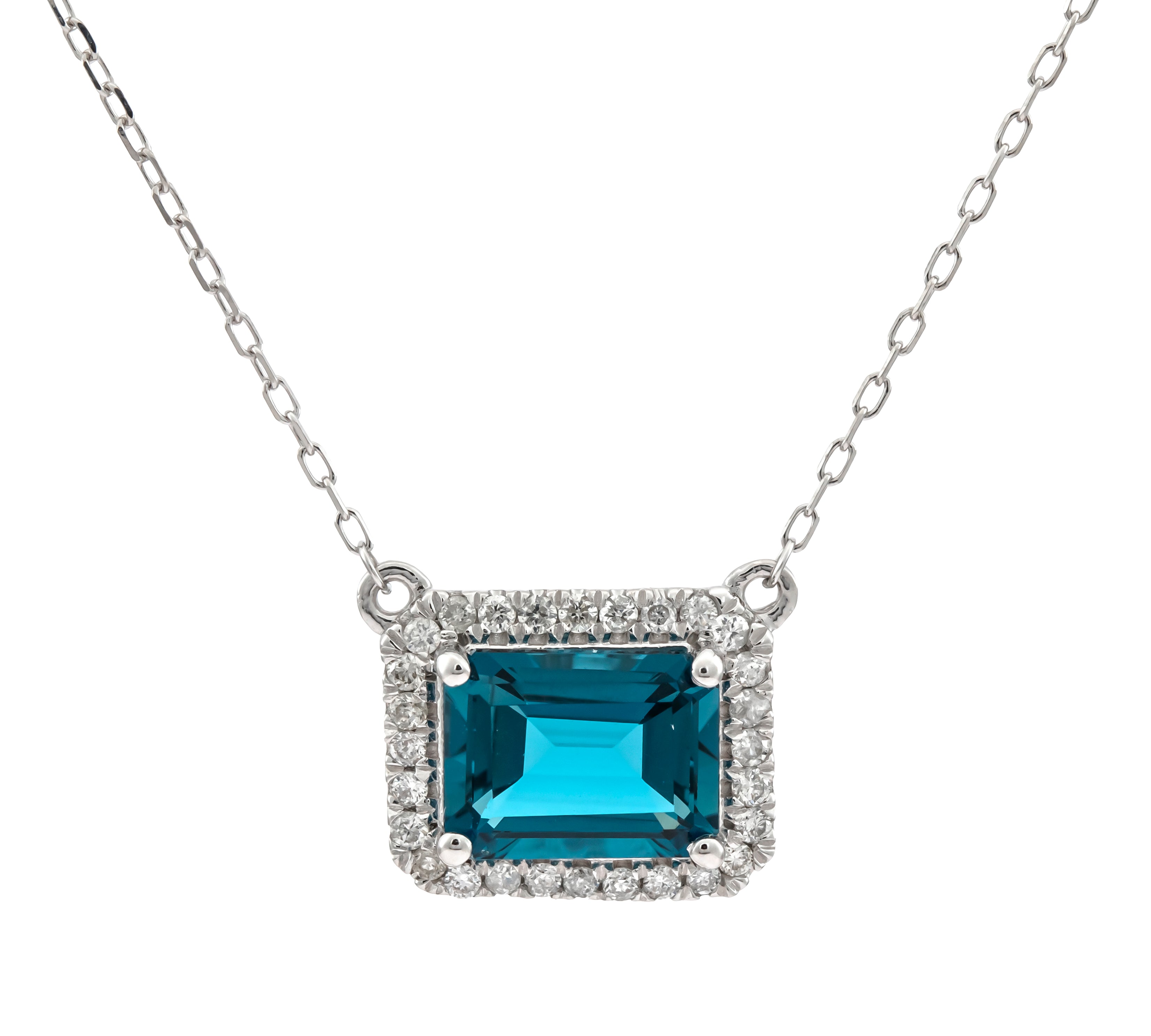 Clara 14K White Gold Emerald-Cut Brazilian London Blue Topaz Pendant