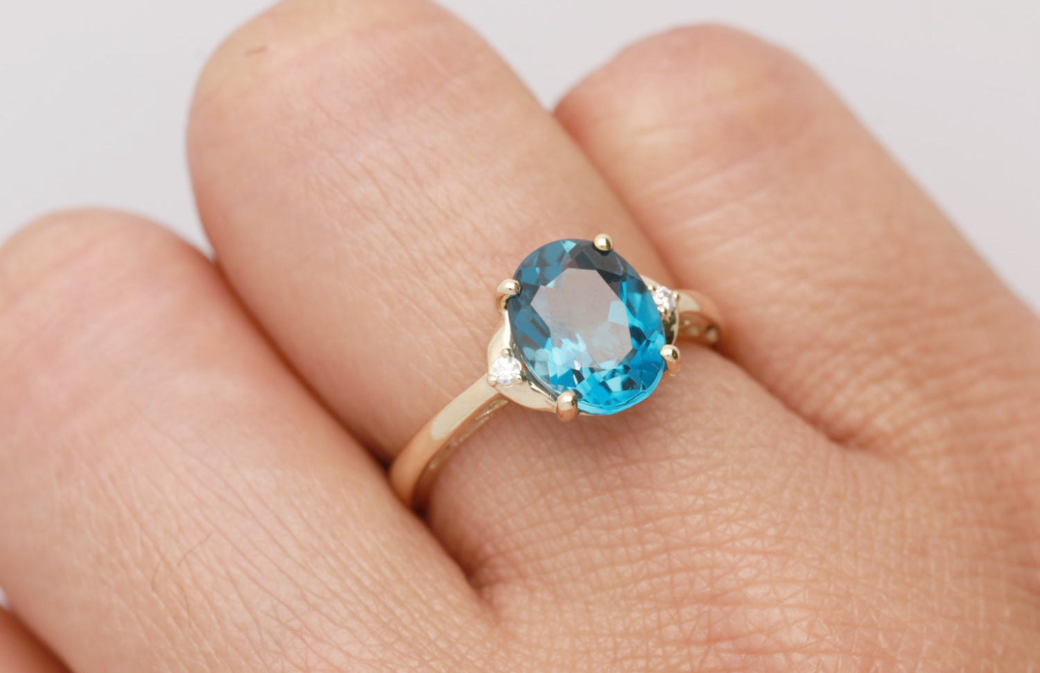 Alexandra 10K Yellow Gold Oval-Cut Brazilian London Blue Topaz Ring