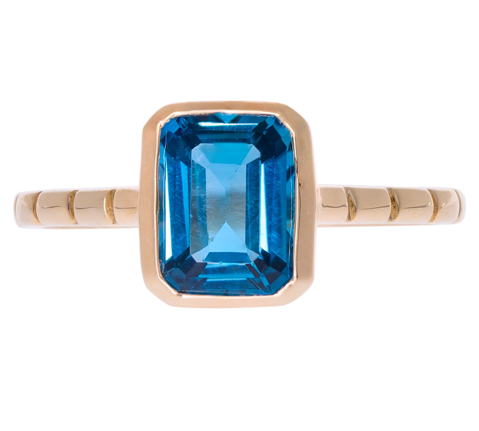 Kaylin 10K Yellow Gold Emerald-Cut Brazilian London Blue Topaz Ring