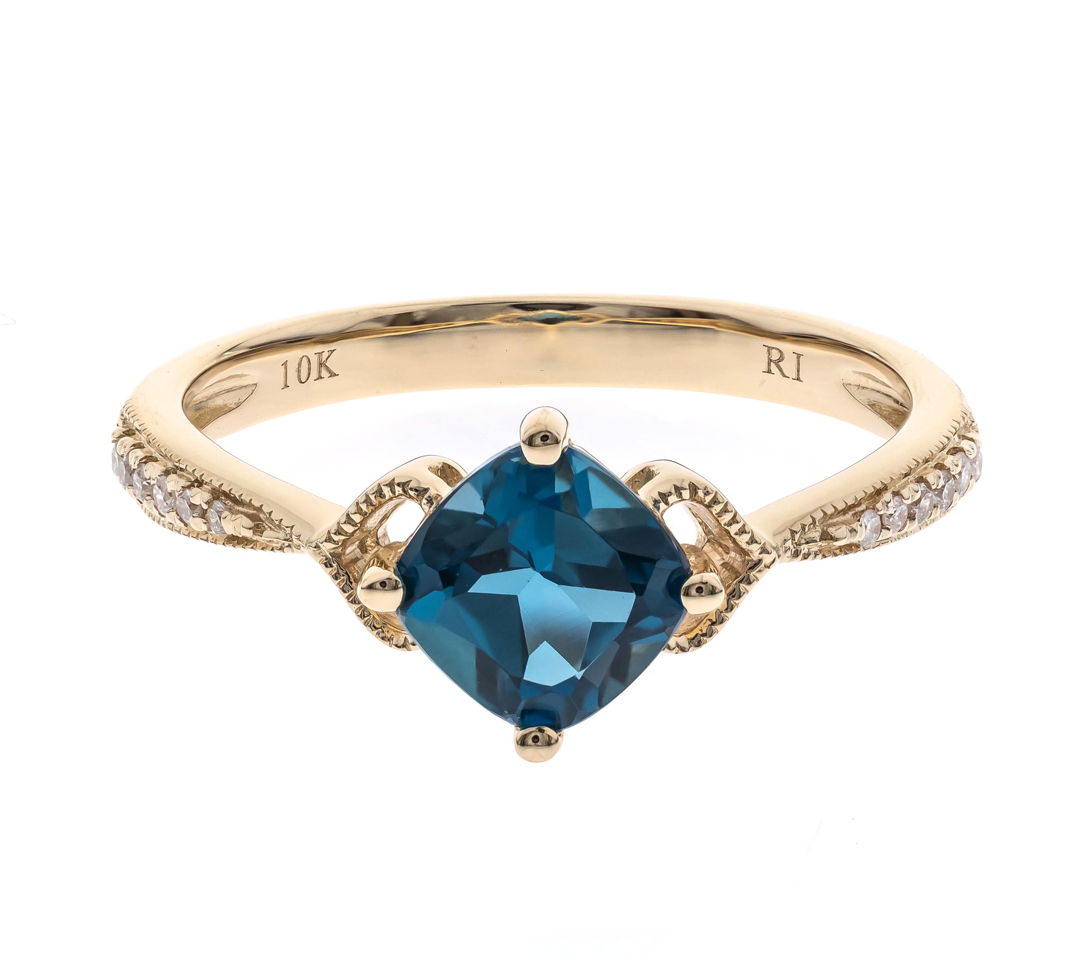 Aulani 10K Yellow Gold Cushion-Cut Brazilian London Blue Topaz Ring