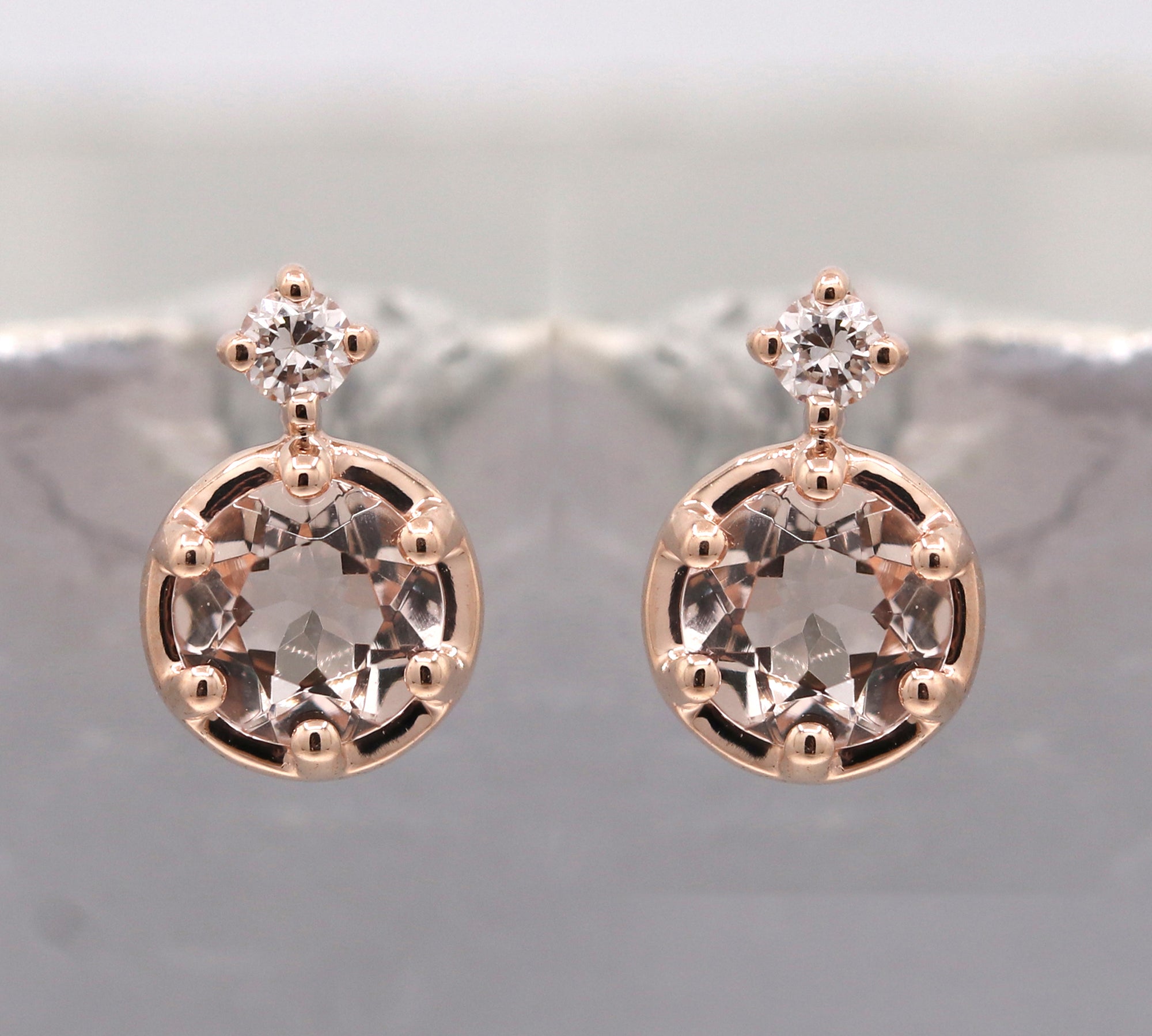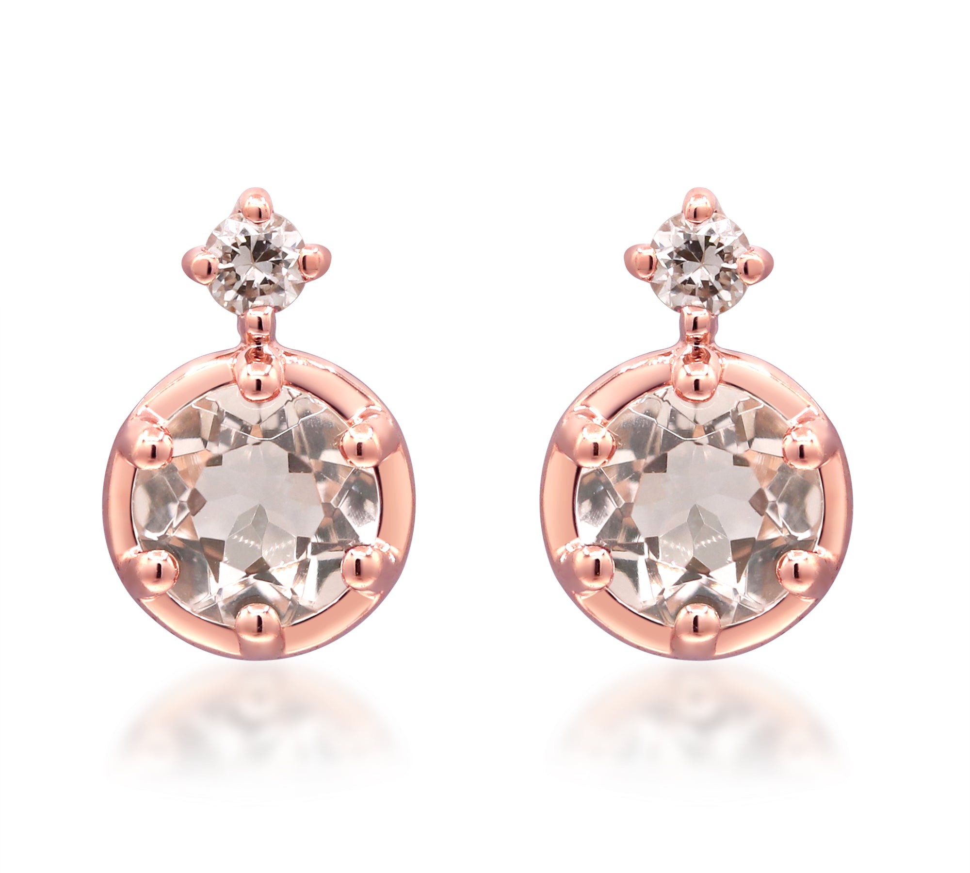 Naomi 10K Rose Gold Round-Cut Madagascar Morganite Earrings
