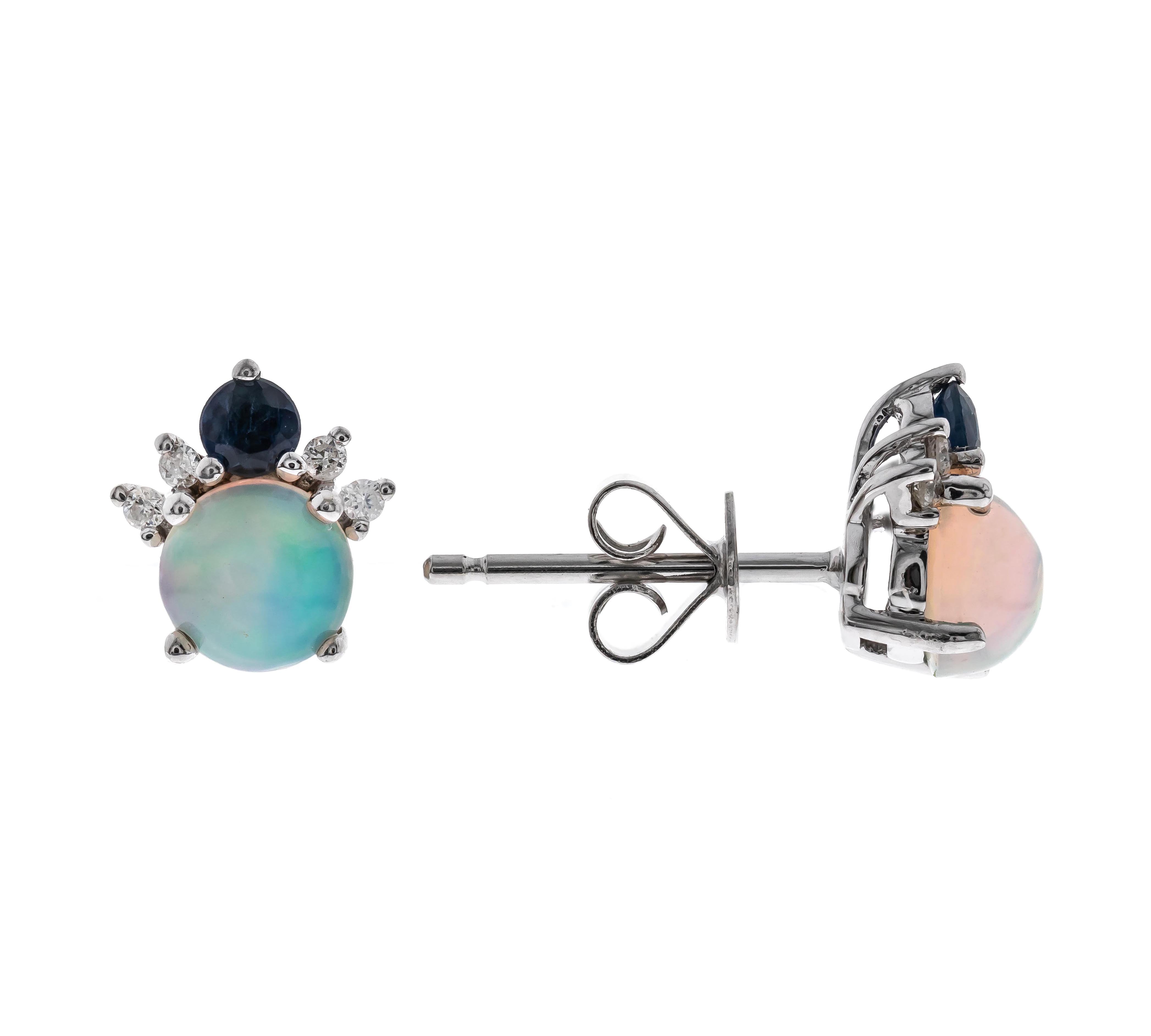 Alexander 10K White Gold Round-Cut Natural African Opal Earring