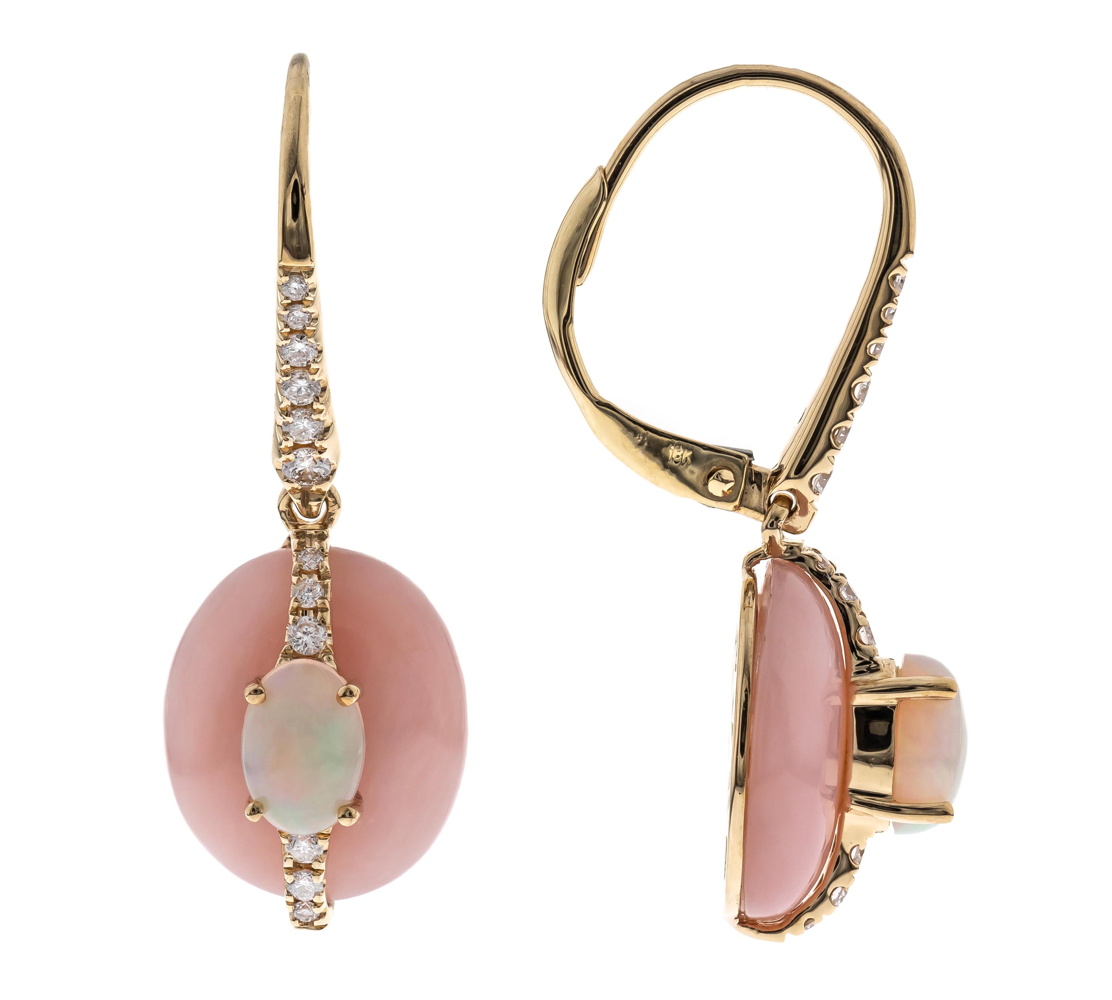 Ethiopian Opal and Pink Opal Halo Earrings with Diamond Accents