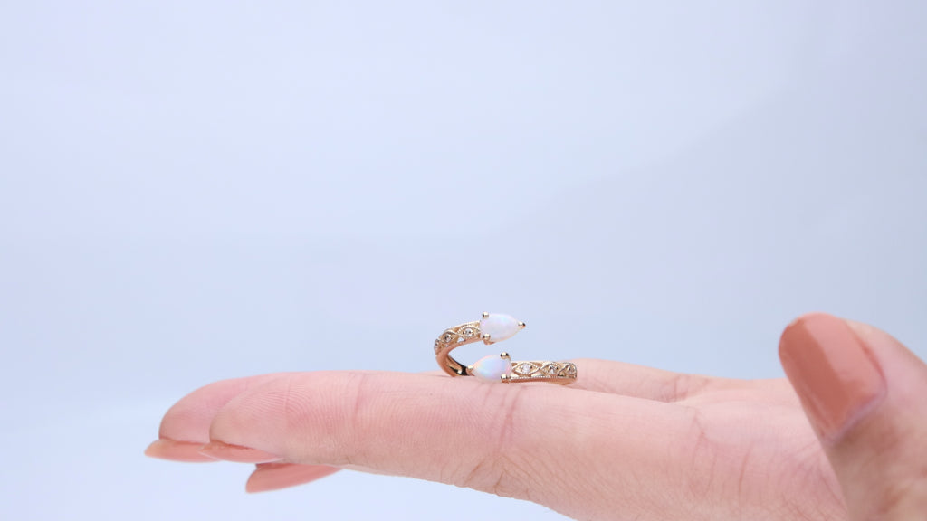 Stunning, timeless and classy eternity Unique Ring. Decorate yourself in luxury with this Gin & Grace Ring. The 14K Yellow Gold jewelry boasts Pear-Cut Prong Setting Natural African Opal (2 pcs) 0.50 Carat, along with Natural Round Cut white Diamond (6 Pcs) 0.06 Carat, accent stones for a lovely design. This Ring is weight 2.35 grams. Crafted with 14K Yellow Gold, this delicate Ring is polished to a high finish shine.