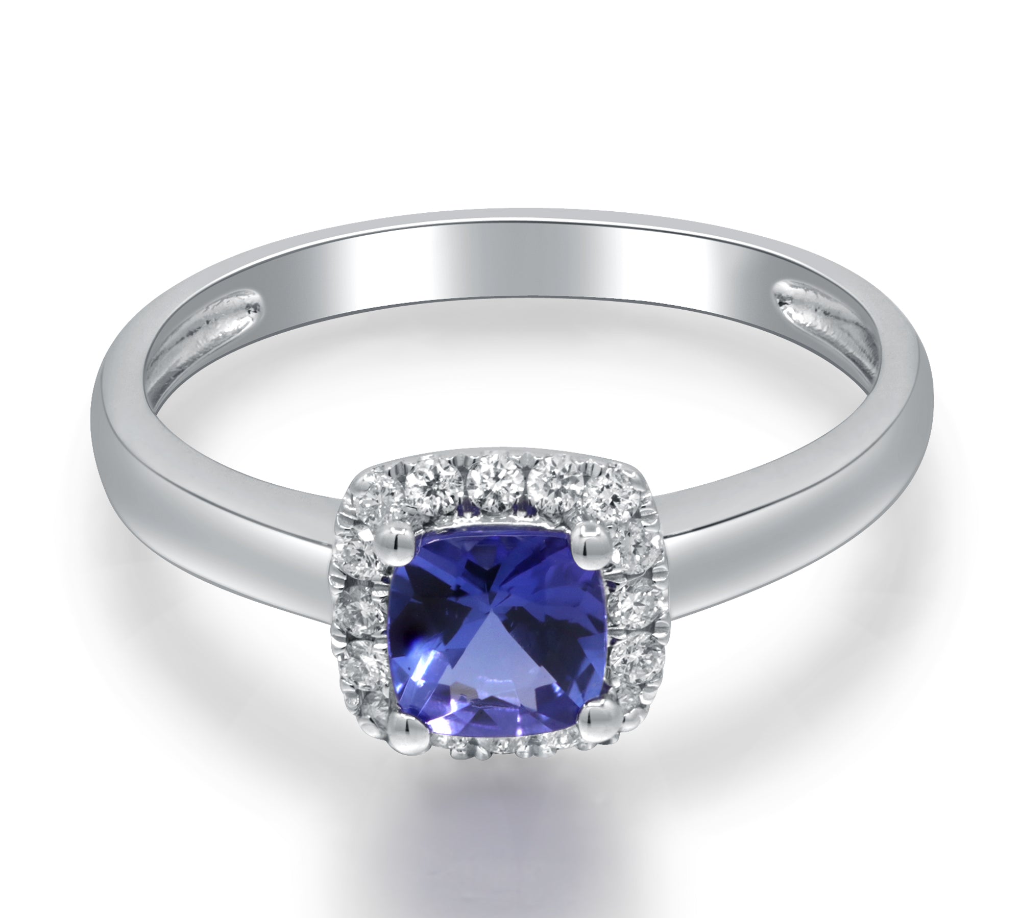 Amari 10K White Gold Cushion-Cut Tanzanian Tanzanite Ring