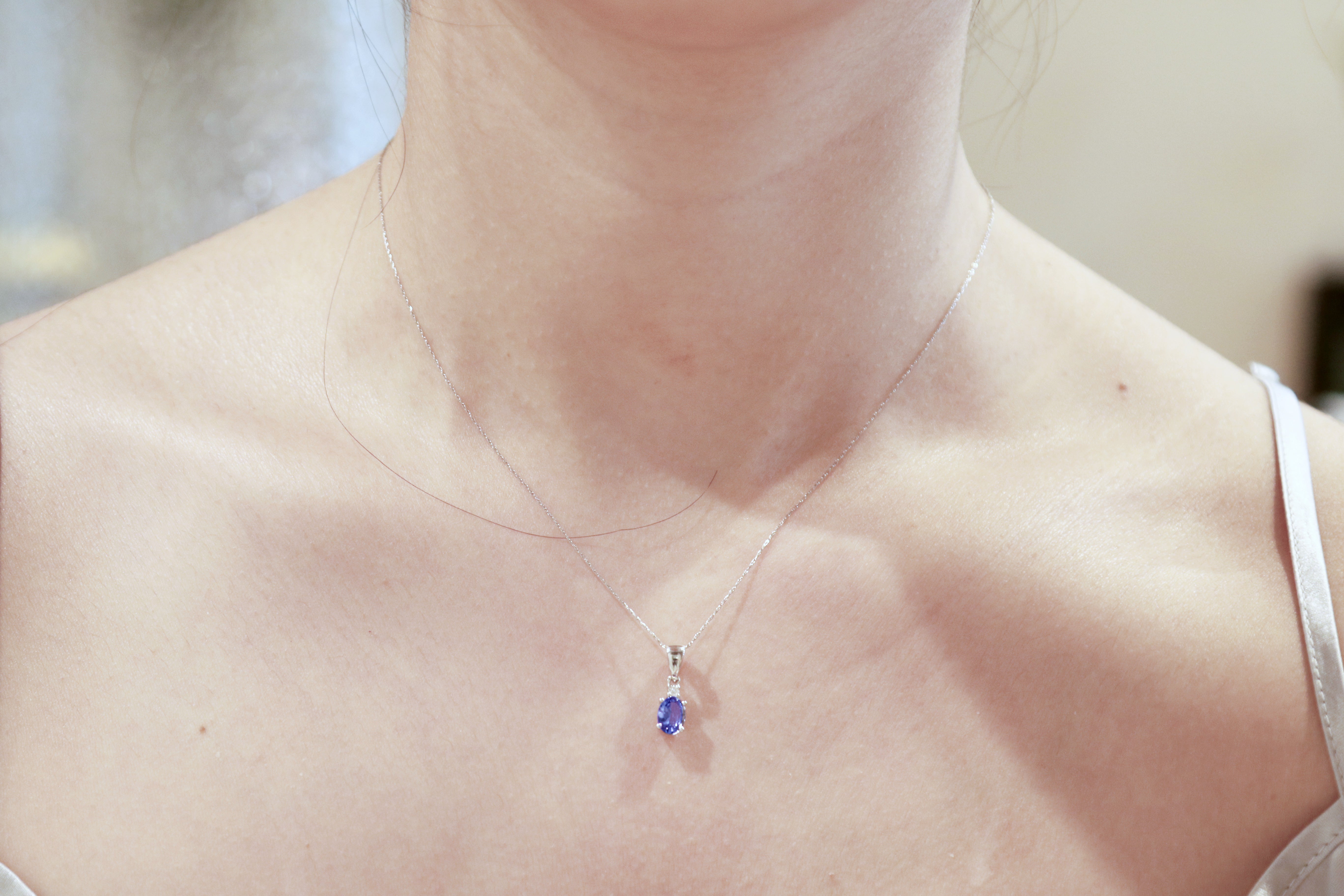 Stunning, timeless and classy eternity Unique Pendant. Decorate yourself in luxury with this Gin & Grace Pendant. The 14k White Gold jewelry boasts Oval-Cut Prong Setting Genuine Tanzanian Tanzanite (1 pcs) 0.81 Carat, along with Natural Round cut white Diamond (1 Pcs) 0.03 Carat, accent stones for a lovely design. This Pendant is weight 0.94 grams. Crafted with 14k White Gold, this delicate Pendant is polished to a high finish shine.
