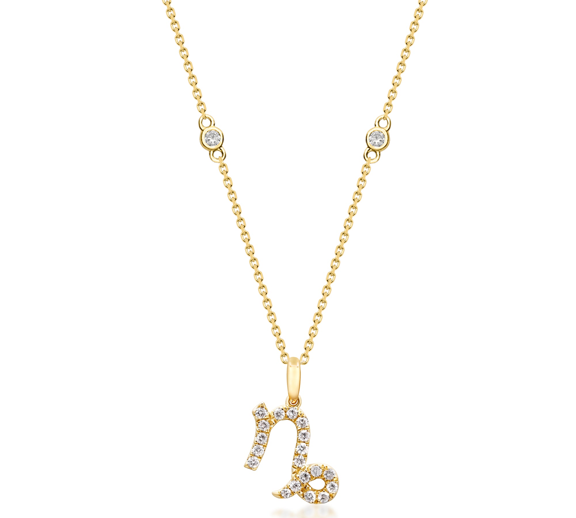 Capricorn 10K Yellow Gold Round-Cut White Diamond Pendant